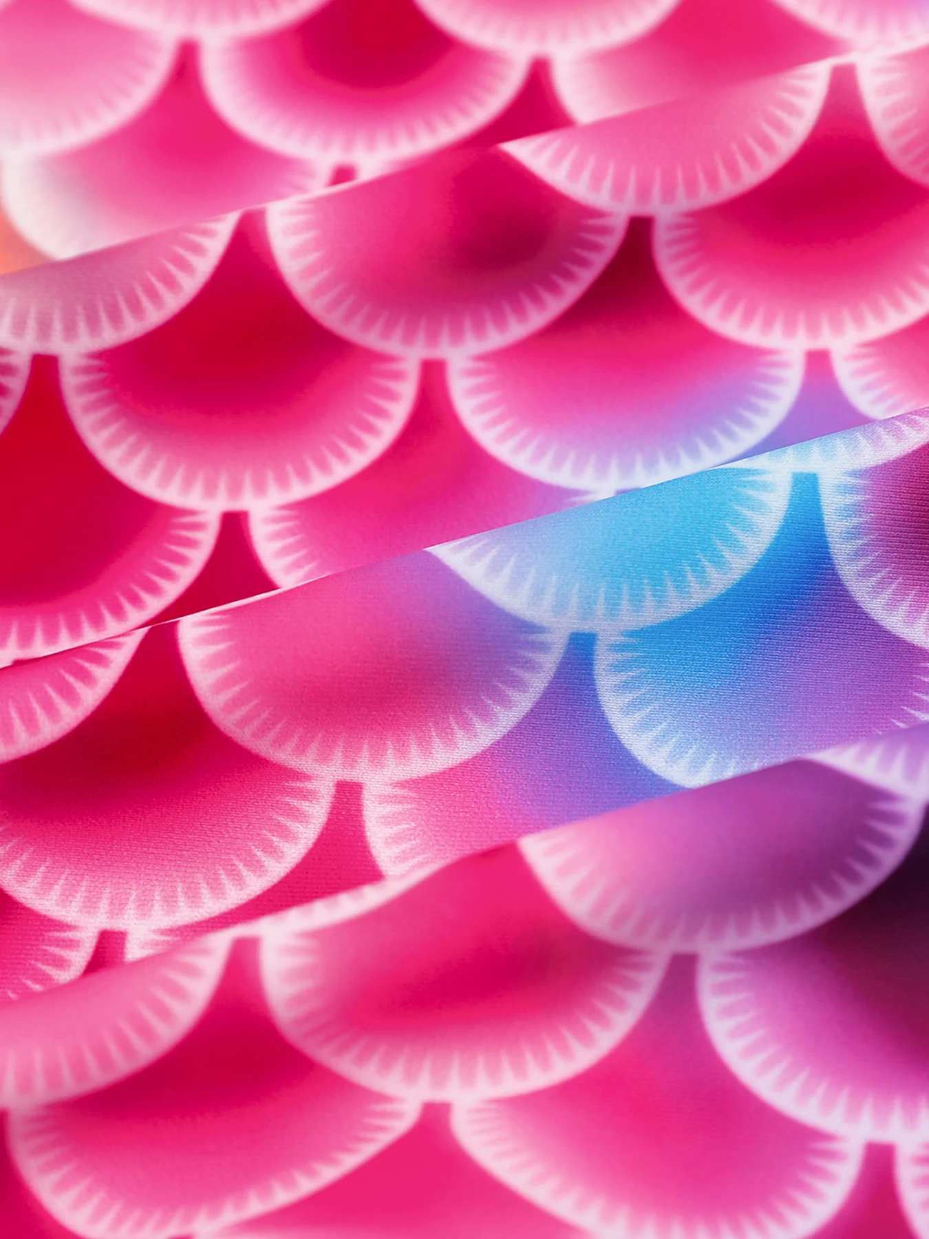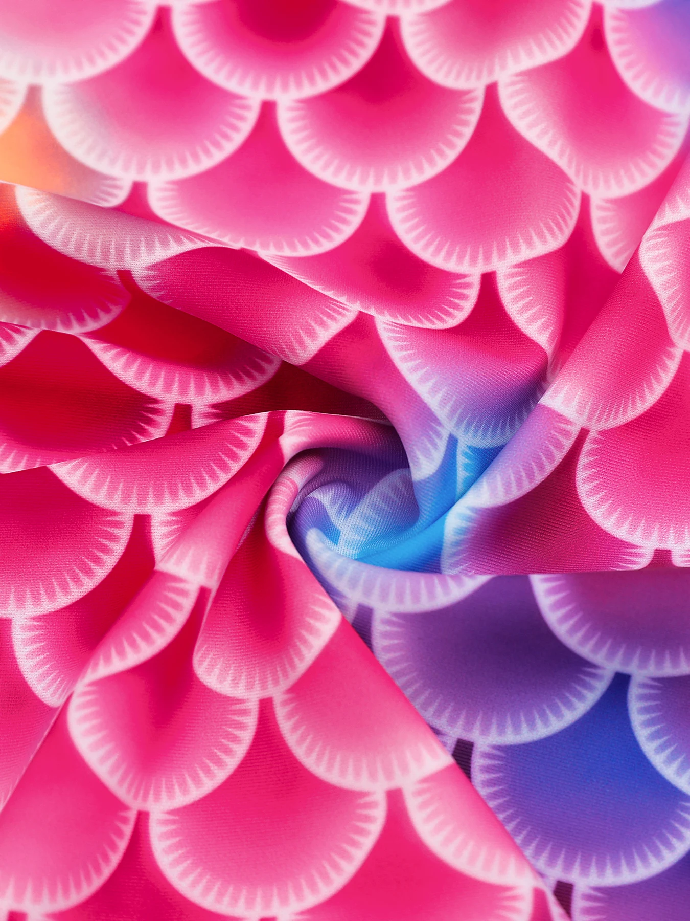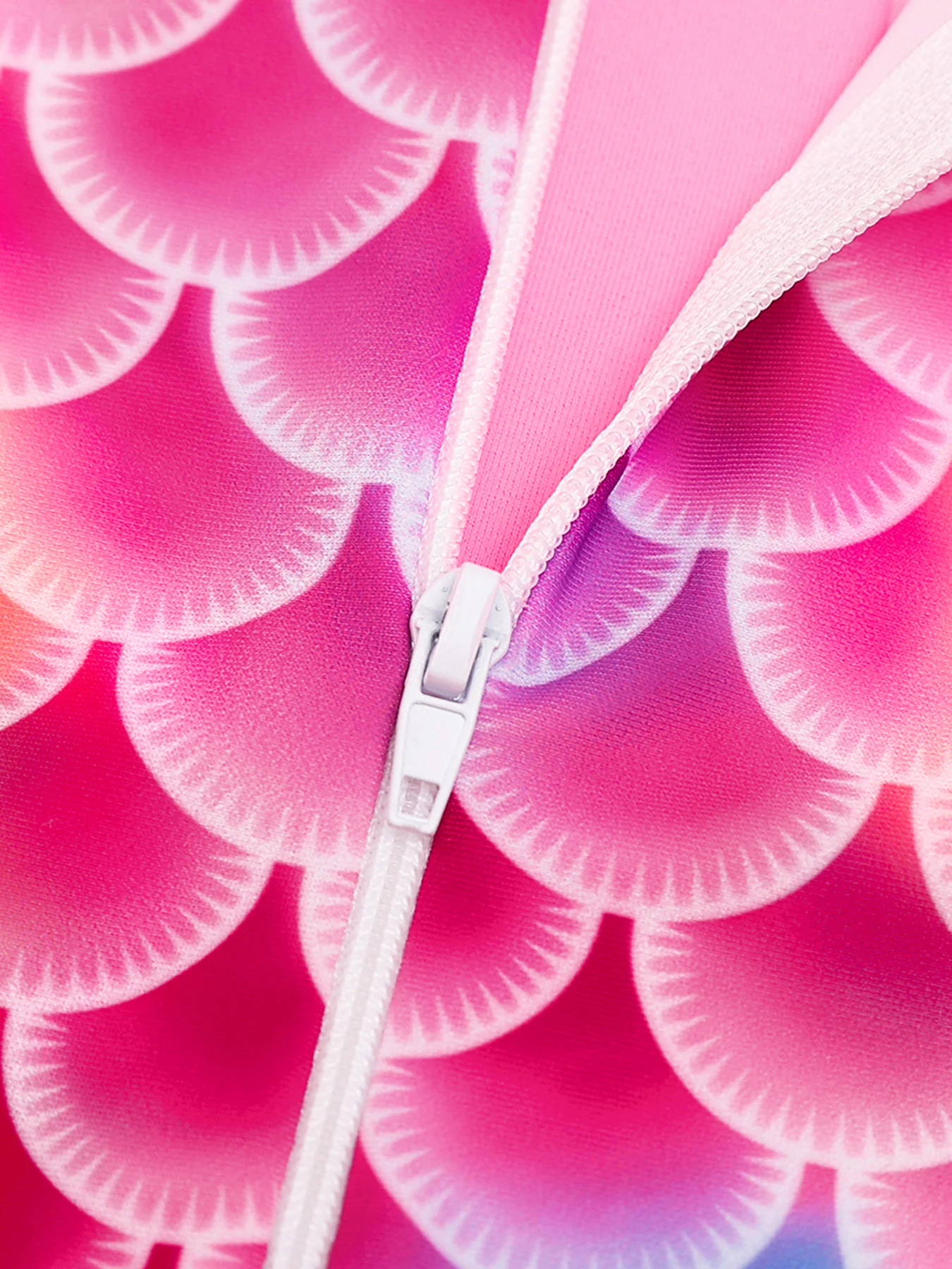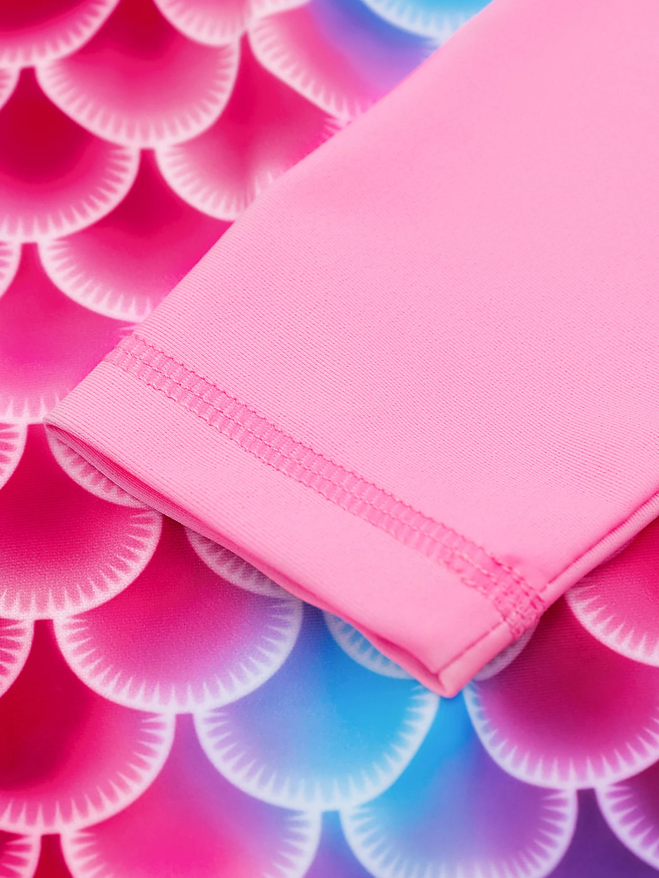 This one-piece swimming suit combines practical design with eye-catching style for young swimmers. The boyleg shorts cut provides comfortable coverage and freedom of movement in the water, while long sleeves offer extended sun protection during beach days. The vibrant 3D scale print in pink creates an engaging visual appeal that kids love. Crafted for durability and chlorine resistance, this swimwear is ideal for pool sessions, beach outings, and summer water activities. Easy to care for and built to withstand regular use, it's a reliable choice for active young swimmers.