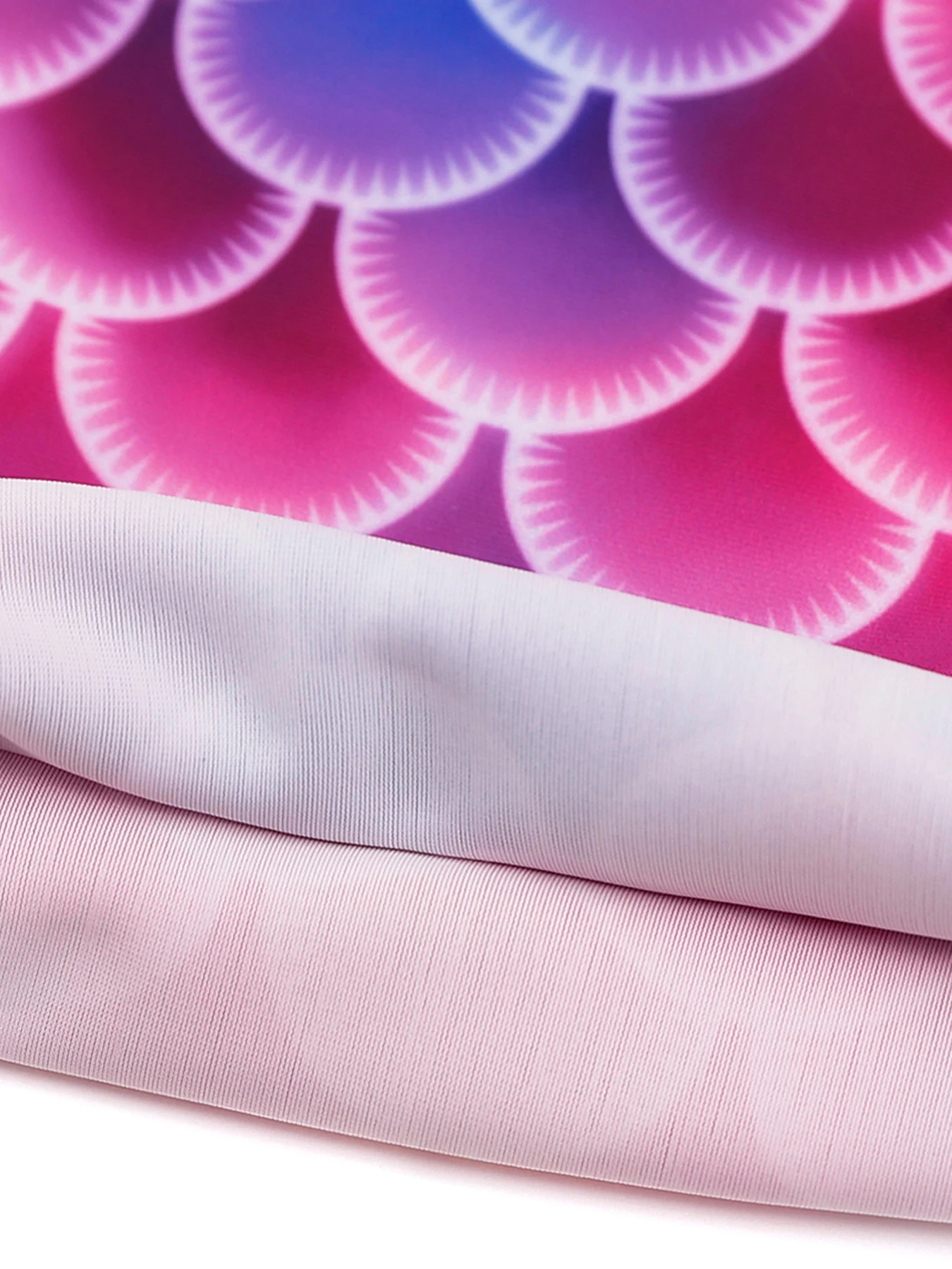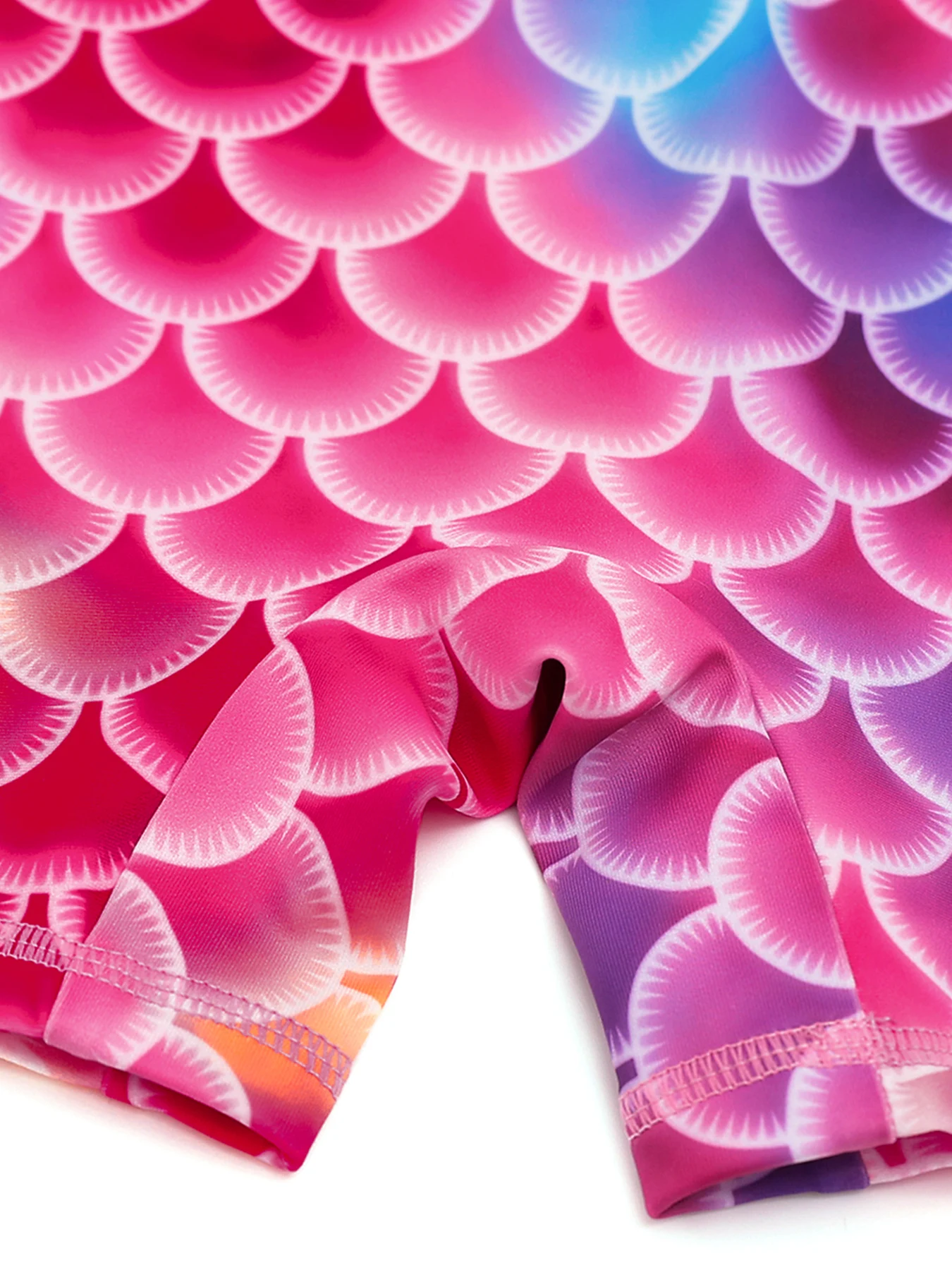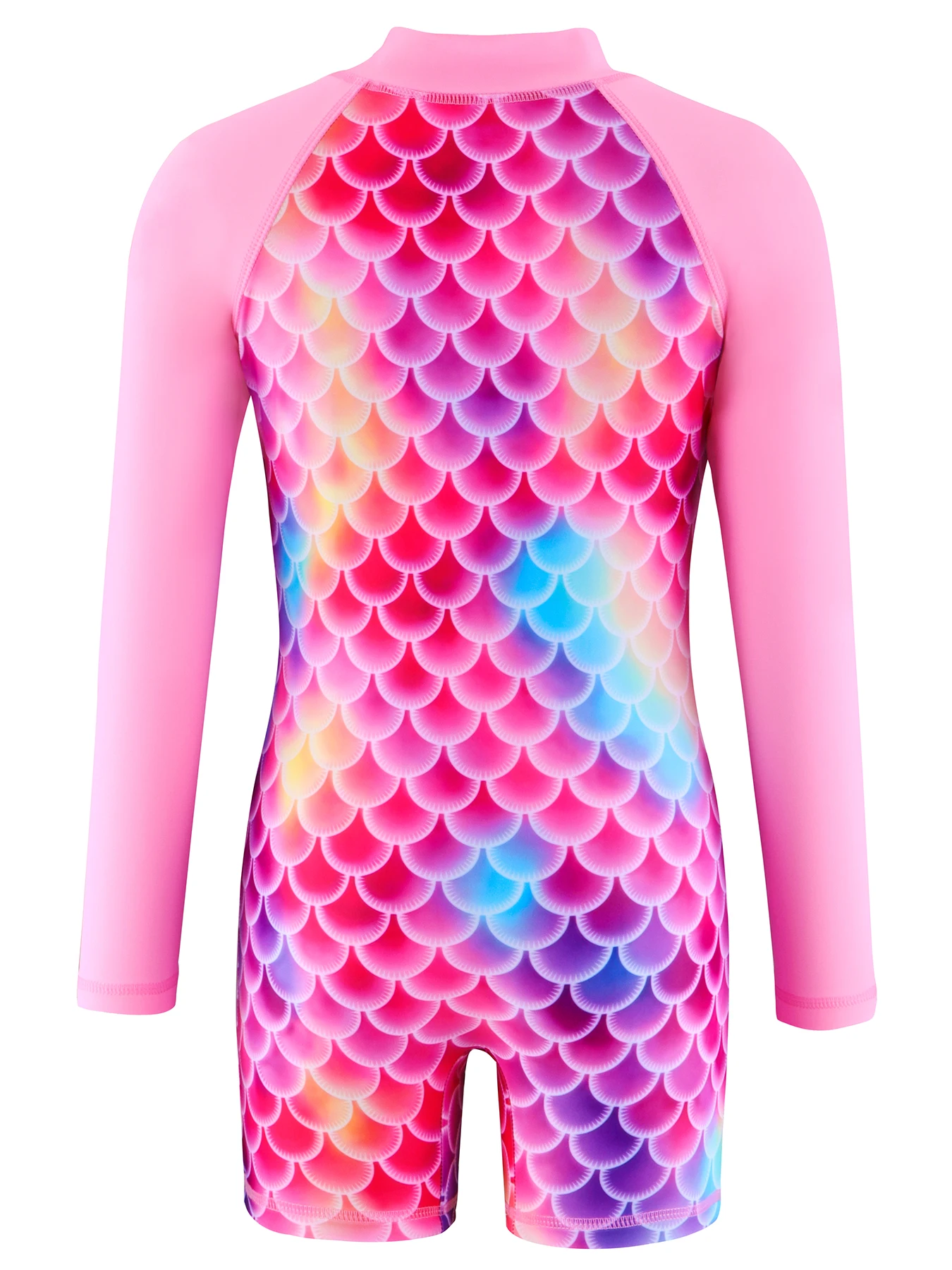Boyleg Shorts Swimming Suit Kids One-Piece Long Sleeve Swimwear 3D Scale Print Pink Color Beach Swimsuit Girls Summer Clothes