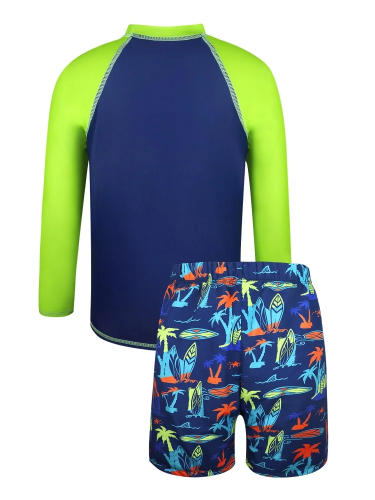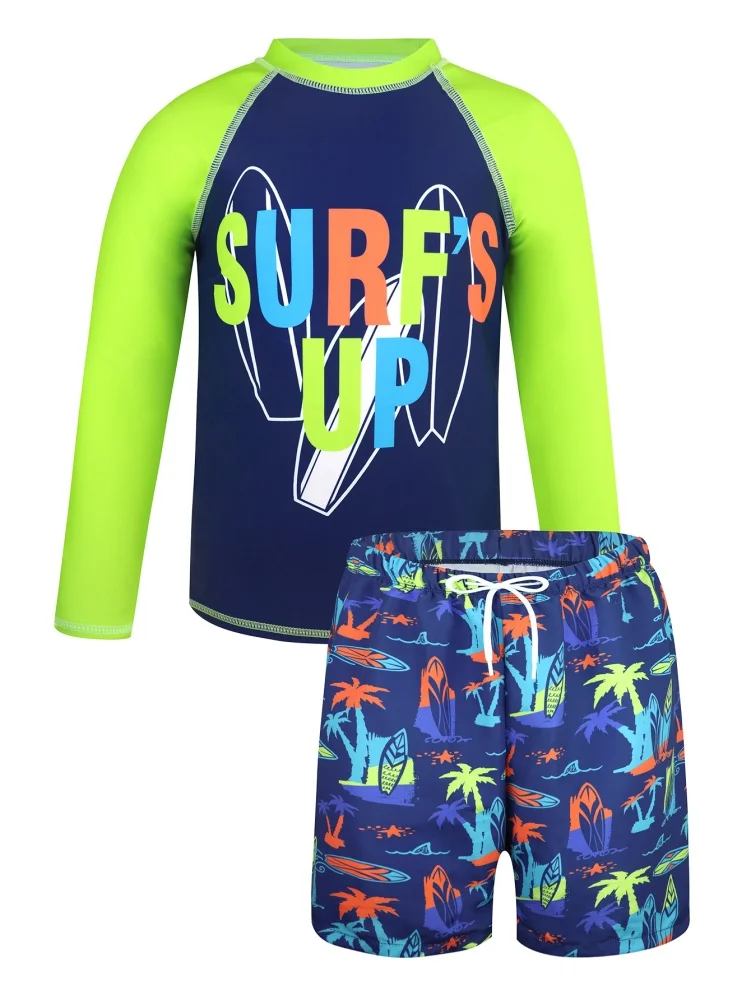 Boys Kids Swimsuit Letter Coconut Tree Print Long Sleeves Children Swimsuit Summer Beach Shorts Bathing Suit Swimming