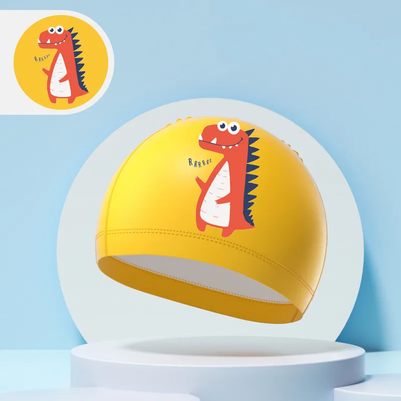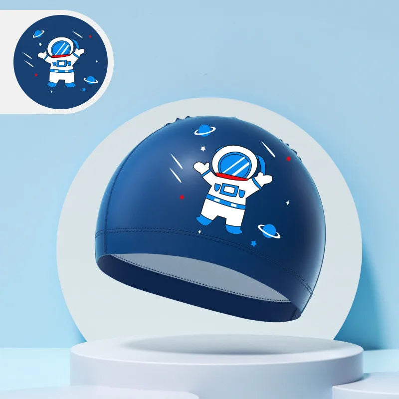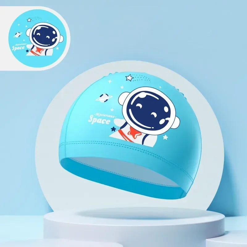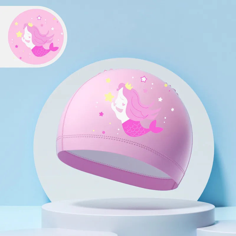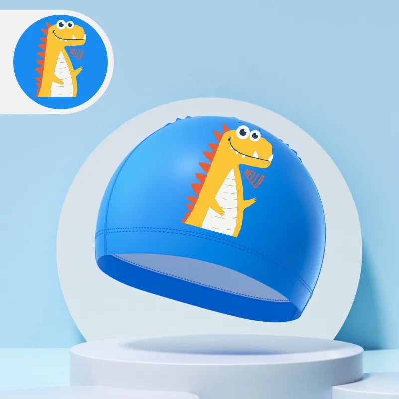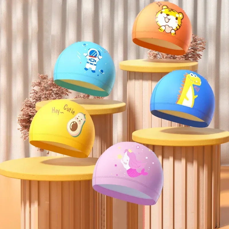 Children's Swimming Caps Boys Girls Kids Cartoon Swim Hat High Elastic Ear Protection PU Waterproof Swimming Cap