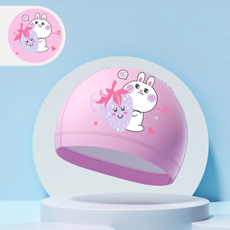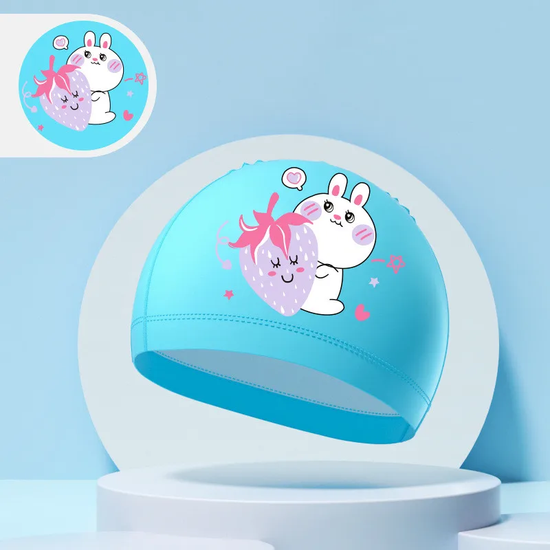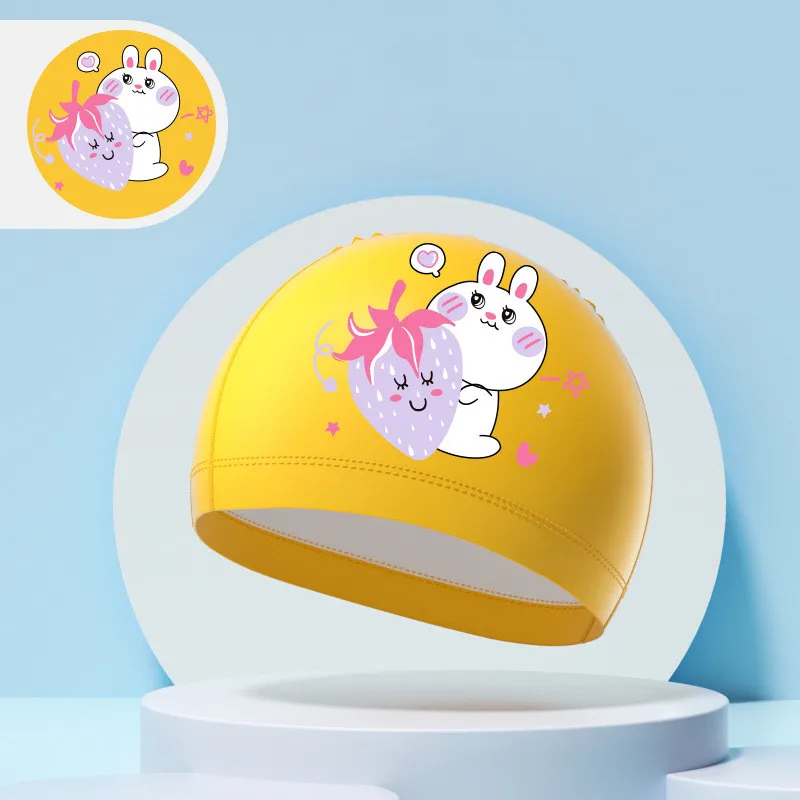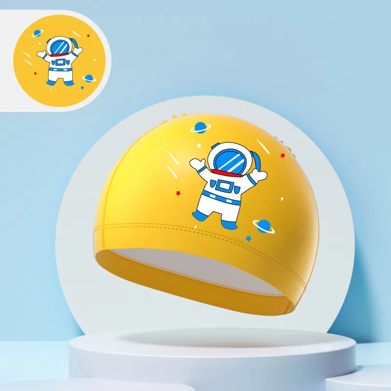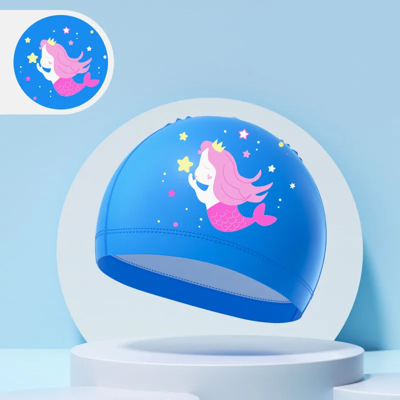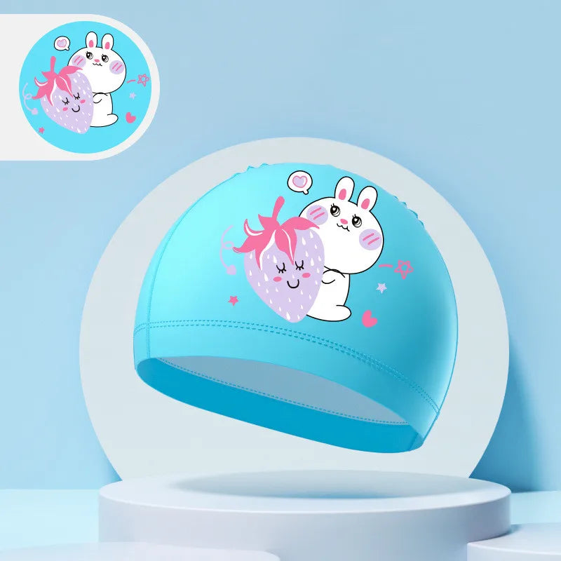 Children's Swimming Caps Boys Girls Kids Cartoon Swim Hat High Elastic Ear Protection PU Waterproof Swimming Cap
