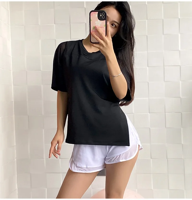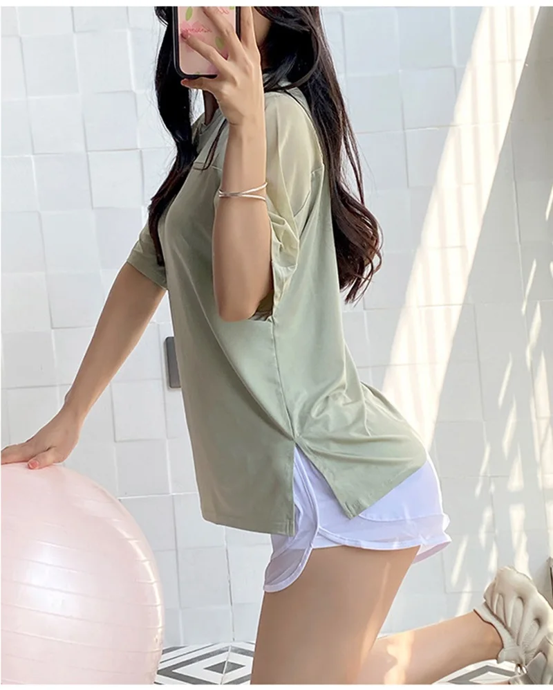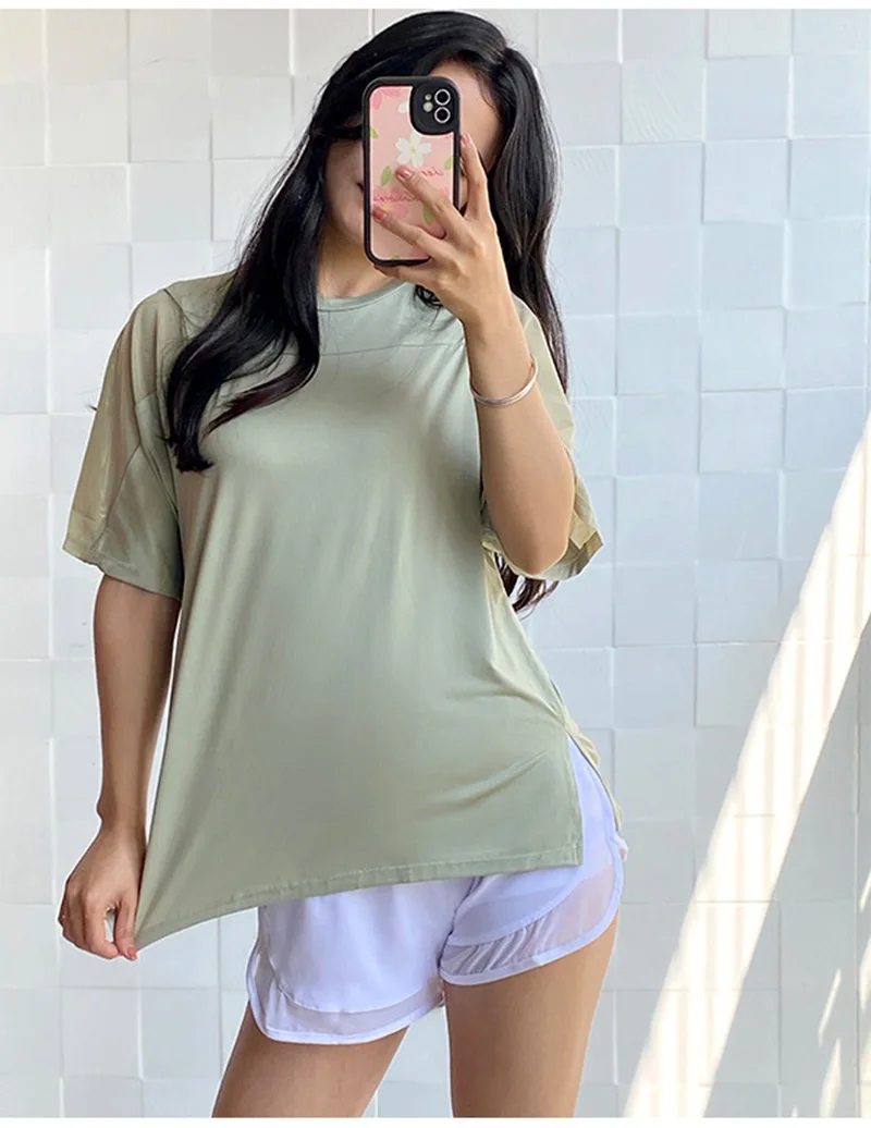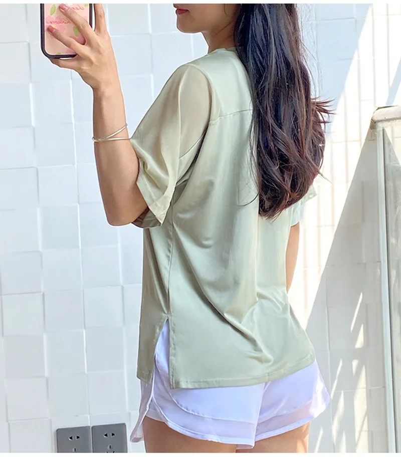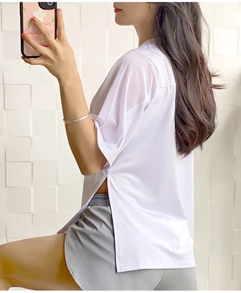 Plus Size Sports Shirt for Lady Women S-XXXXXL Crop Top Yoga T-Shirts Gym Workout Cover-up Short Sleeve Shirts