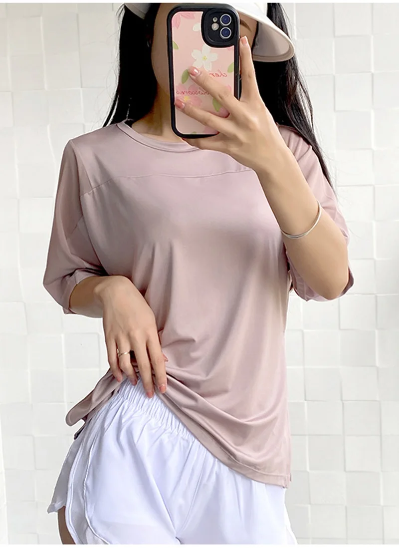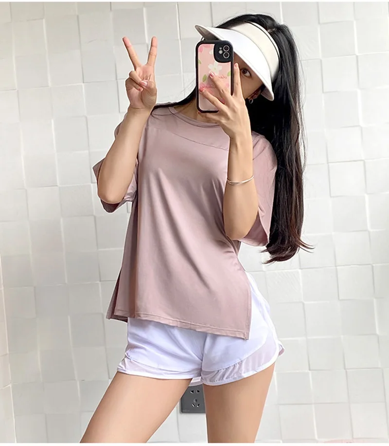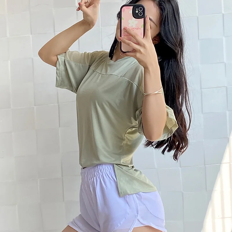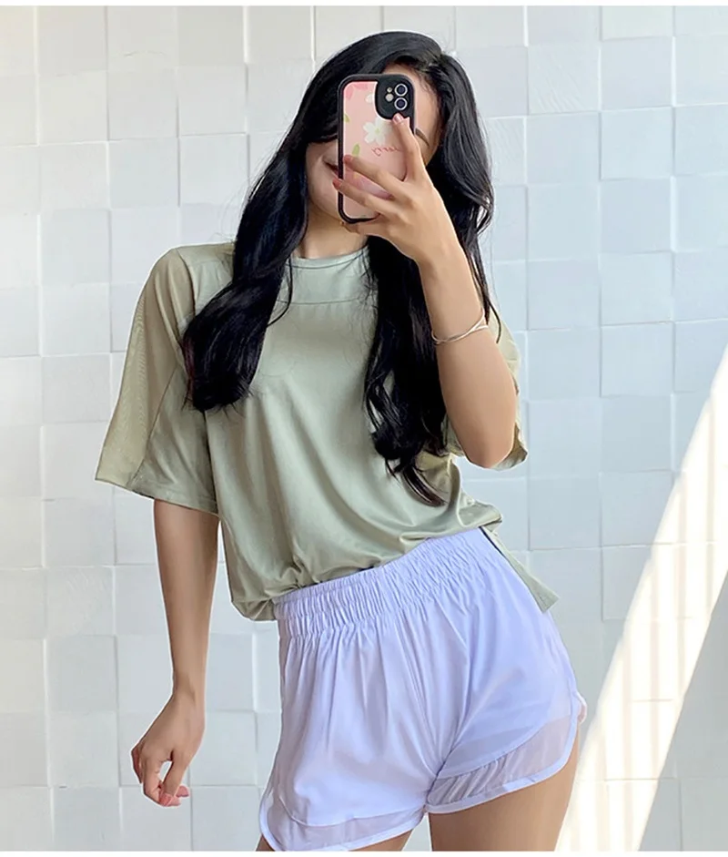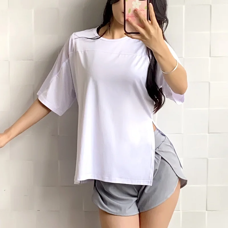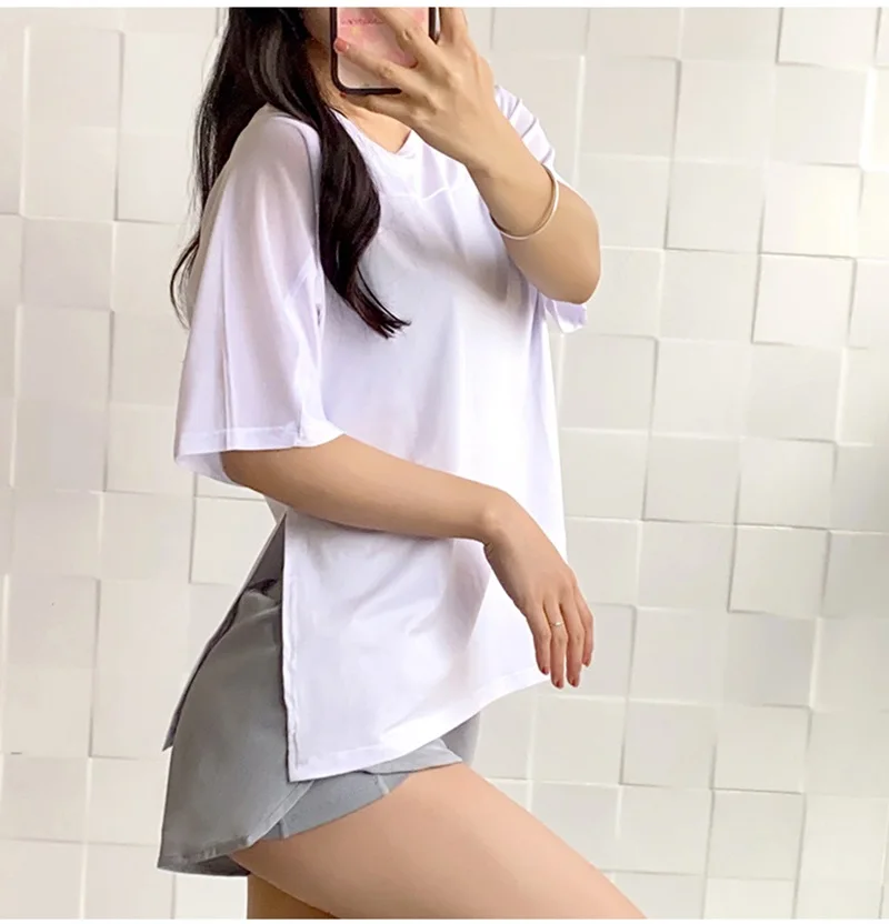 Plus Size Sports Shirt for Lady Women S-XXXXXL Crop Top Yoga T-Shirts Gym Workout Cover-up Short Sleeve Shirts
