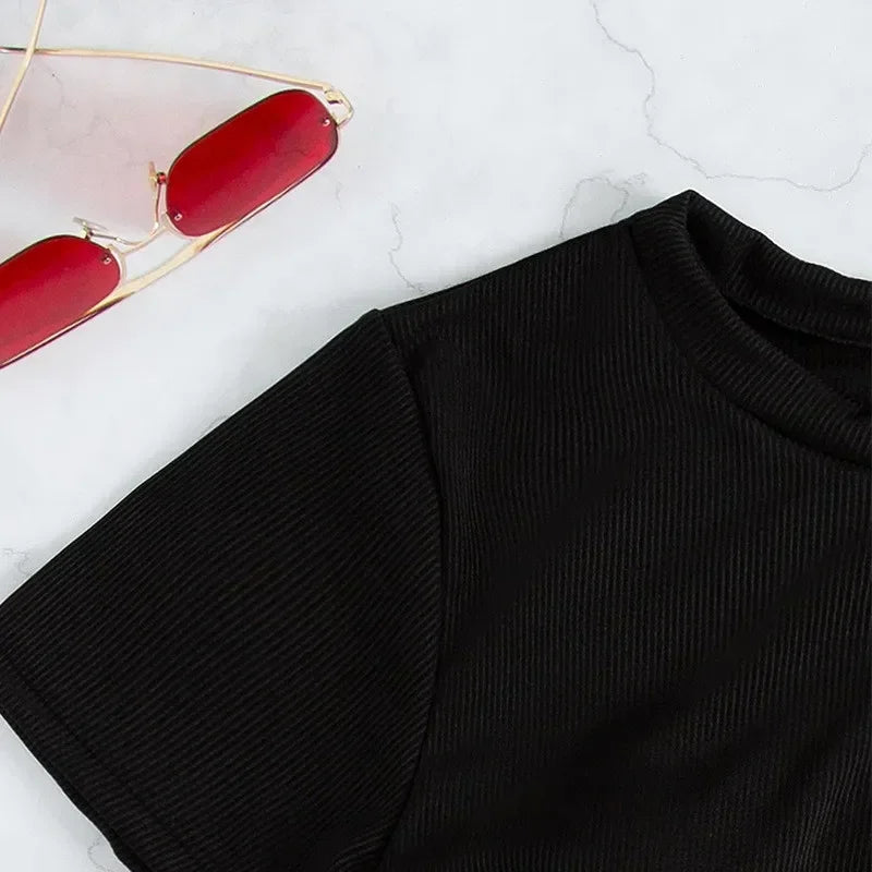 This black ribbed bikini set features a stylish crop top paired with comfortable shorts bottoms, designed for active beachwear. The adjustable drawstring ensures a secure fit, while the textured fabric adds durability and a modern look. Ideal for swimming or casual beach activities, this swimsuit combines functionality with contemporary style for confident, versatile wear.