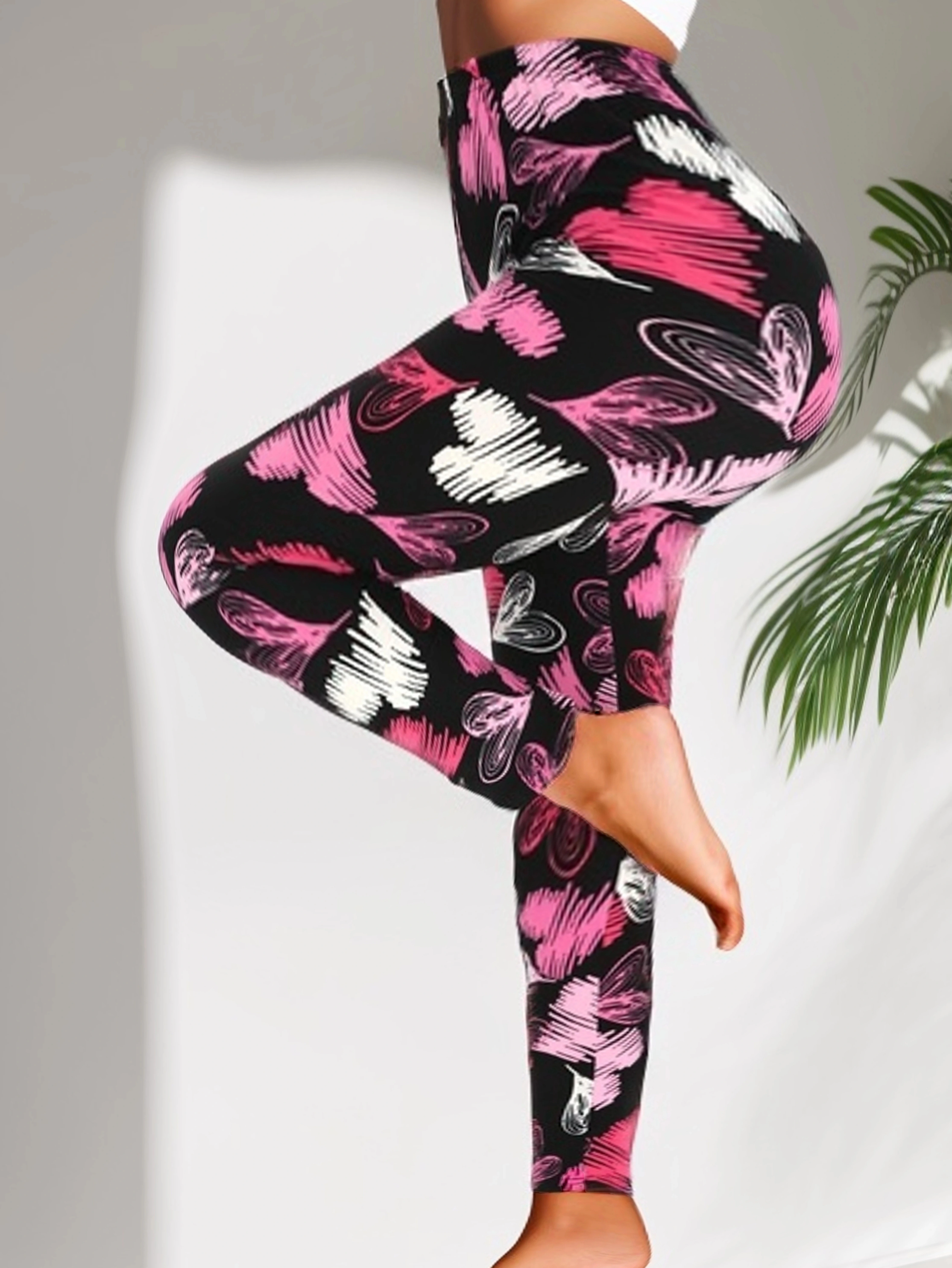 Plus Size Red And White Heart-Shaped Sports High Elasticity Casual Simple Cropped Pants