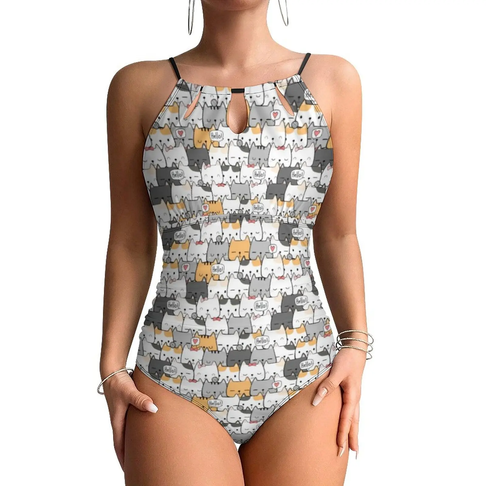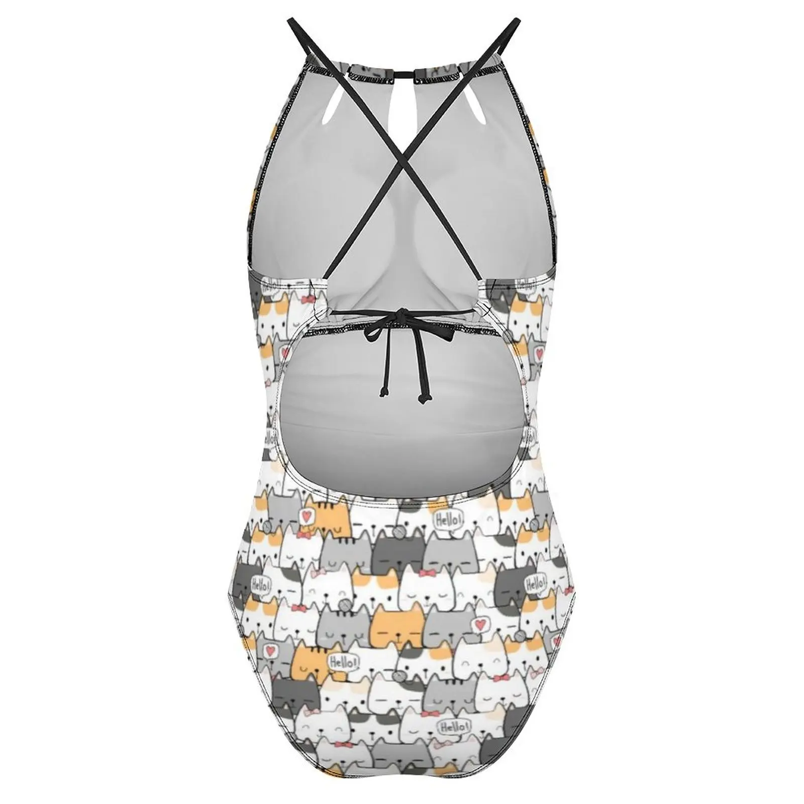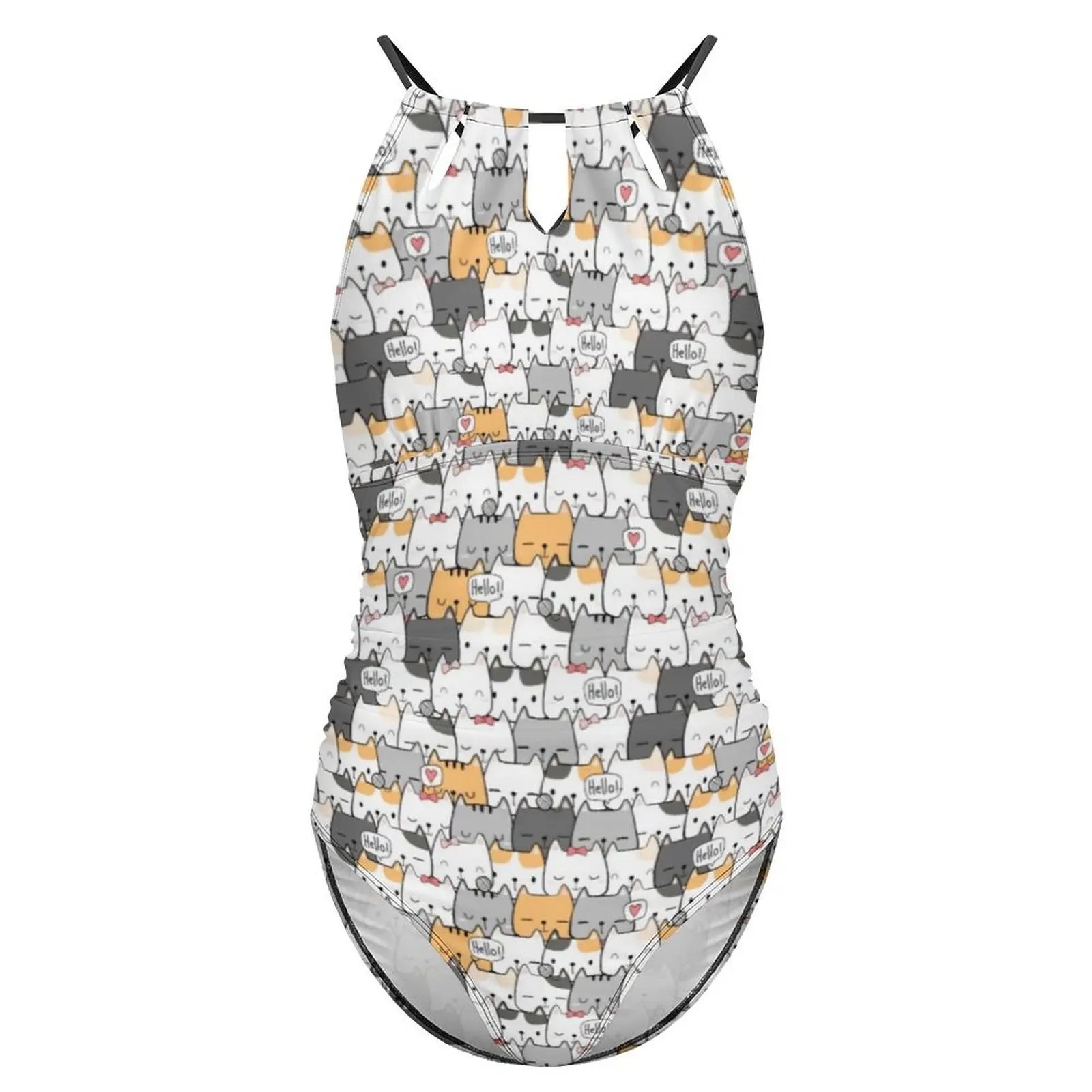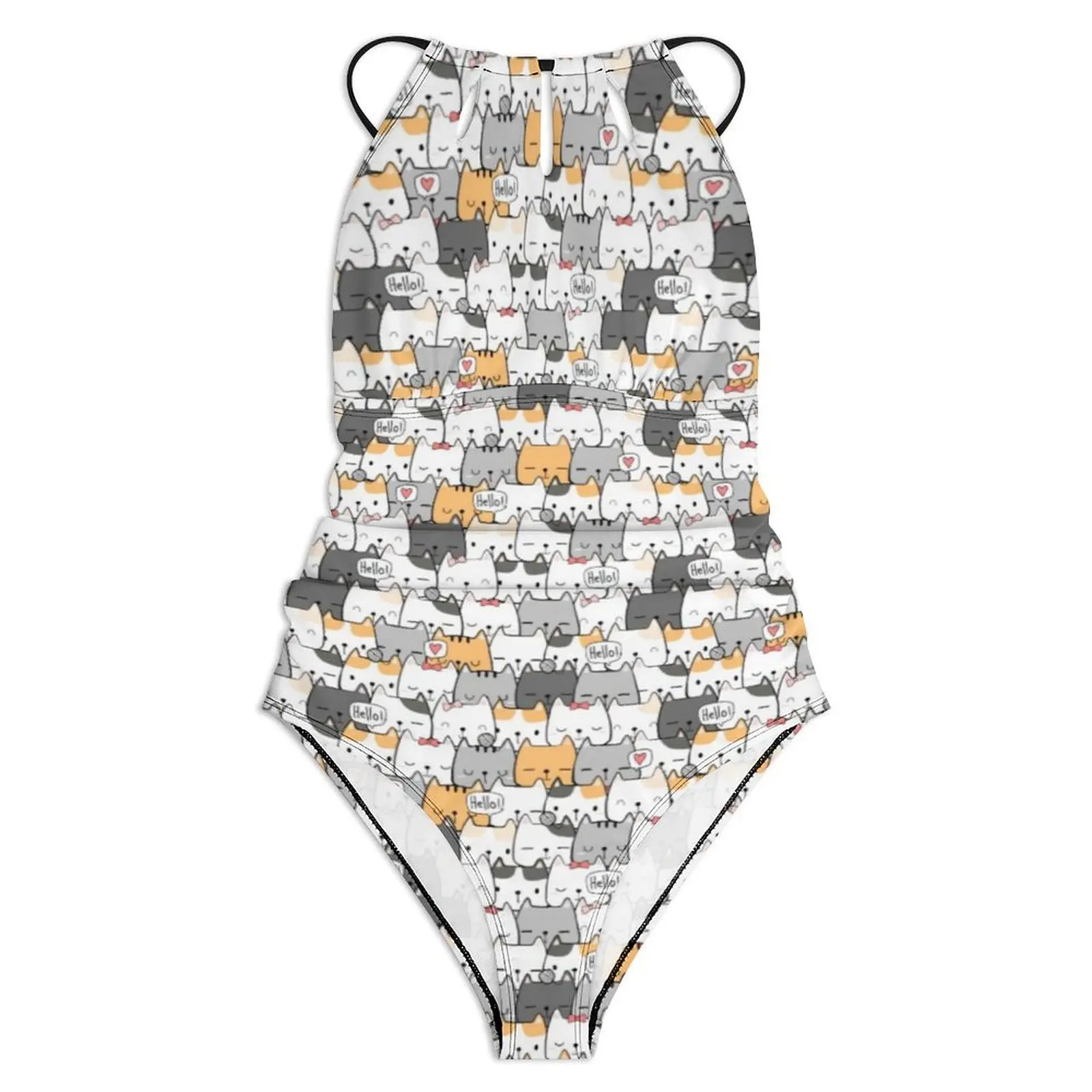 Cute Cats Swimsuit Funny Animal Swimwear One-Piece Vacation Bath Design Bodysuit Halter Bathing Suit Push Up Beachwear