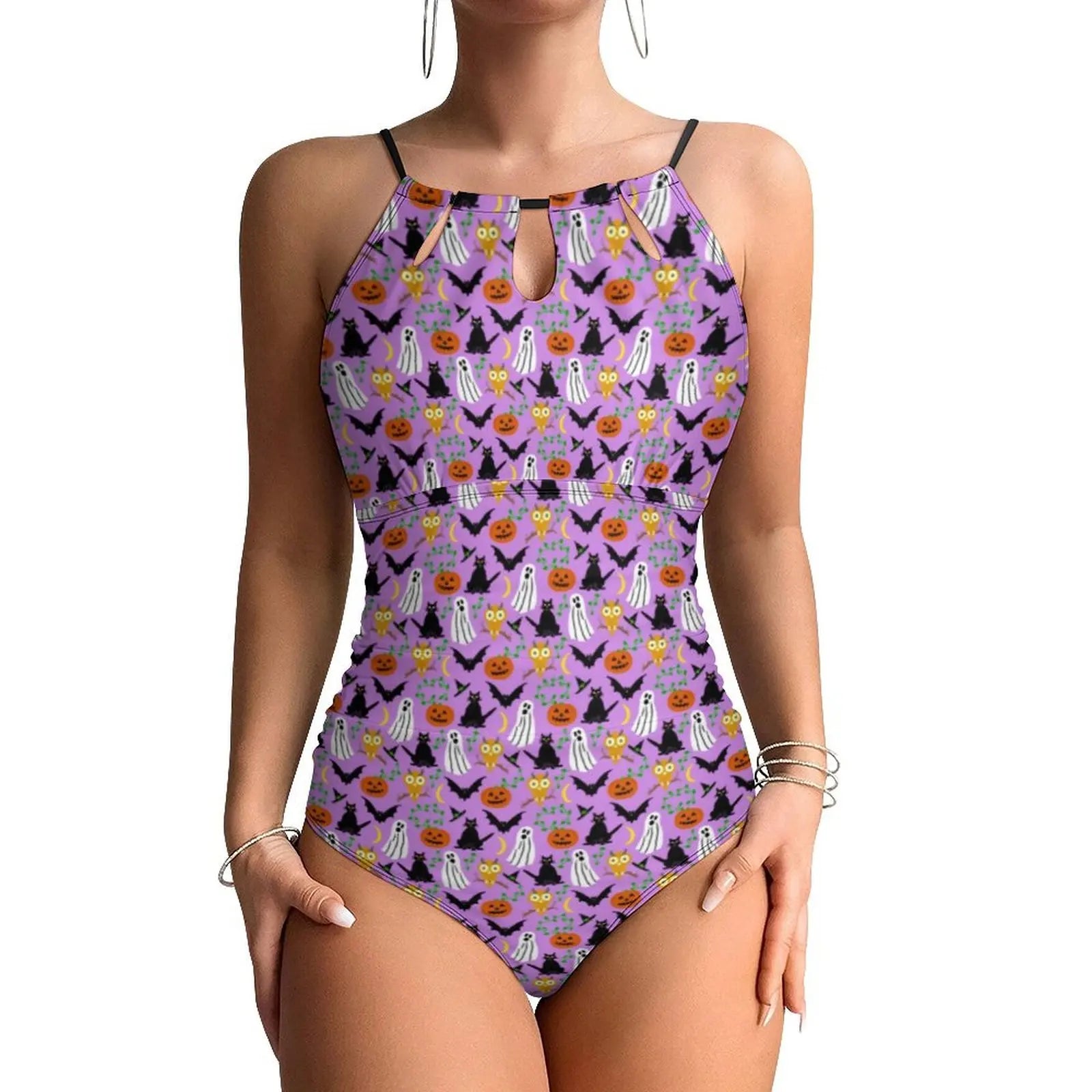 Make a splash with personality in this playful one-piece swimsuit featuring adorable cat designs. The halter neckline provides secure support and flattering coverage, while the push-up bodice enhances your silhouette for confident beach days. Crafted for comfort and style, this versatile piece transitions seamlessly from poolside lounging to vacation adventures. The vibrant animal print adds a fun, lighthearted touch to your swimwear collection. Perfect for those who refuse to compromise