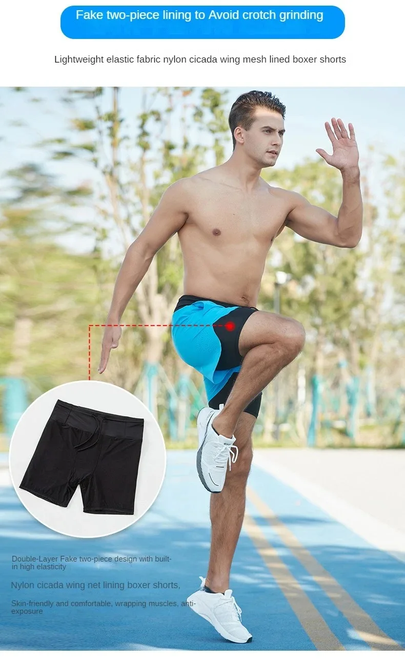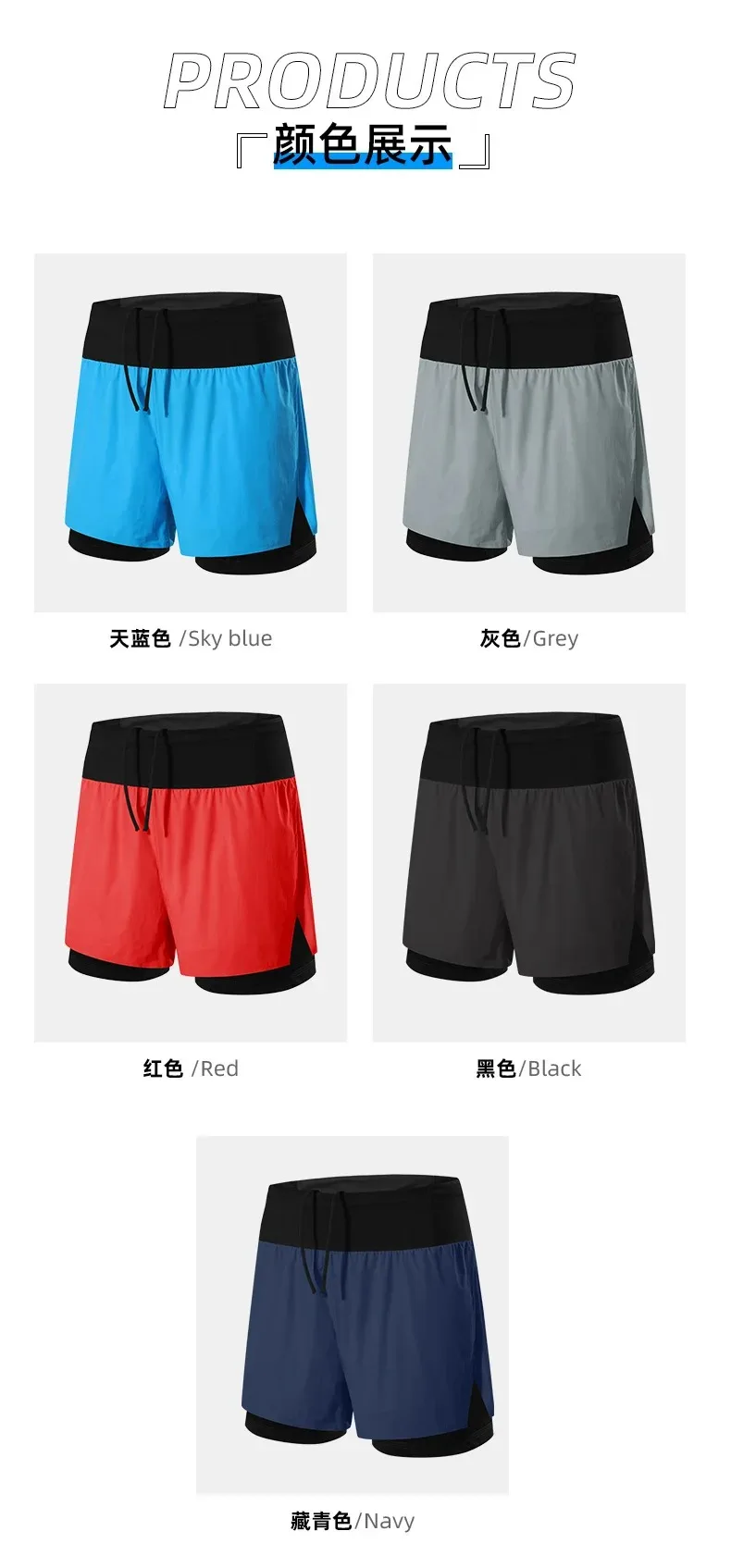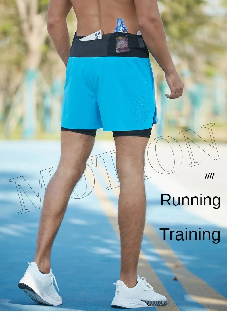 Double-deck Outdoor Marathon Basketball Running Men's Gym Fitness Run Shorts Quick Drying Pocket Training Jogging Workout Shorts