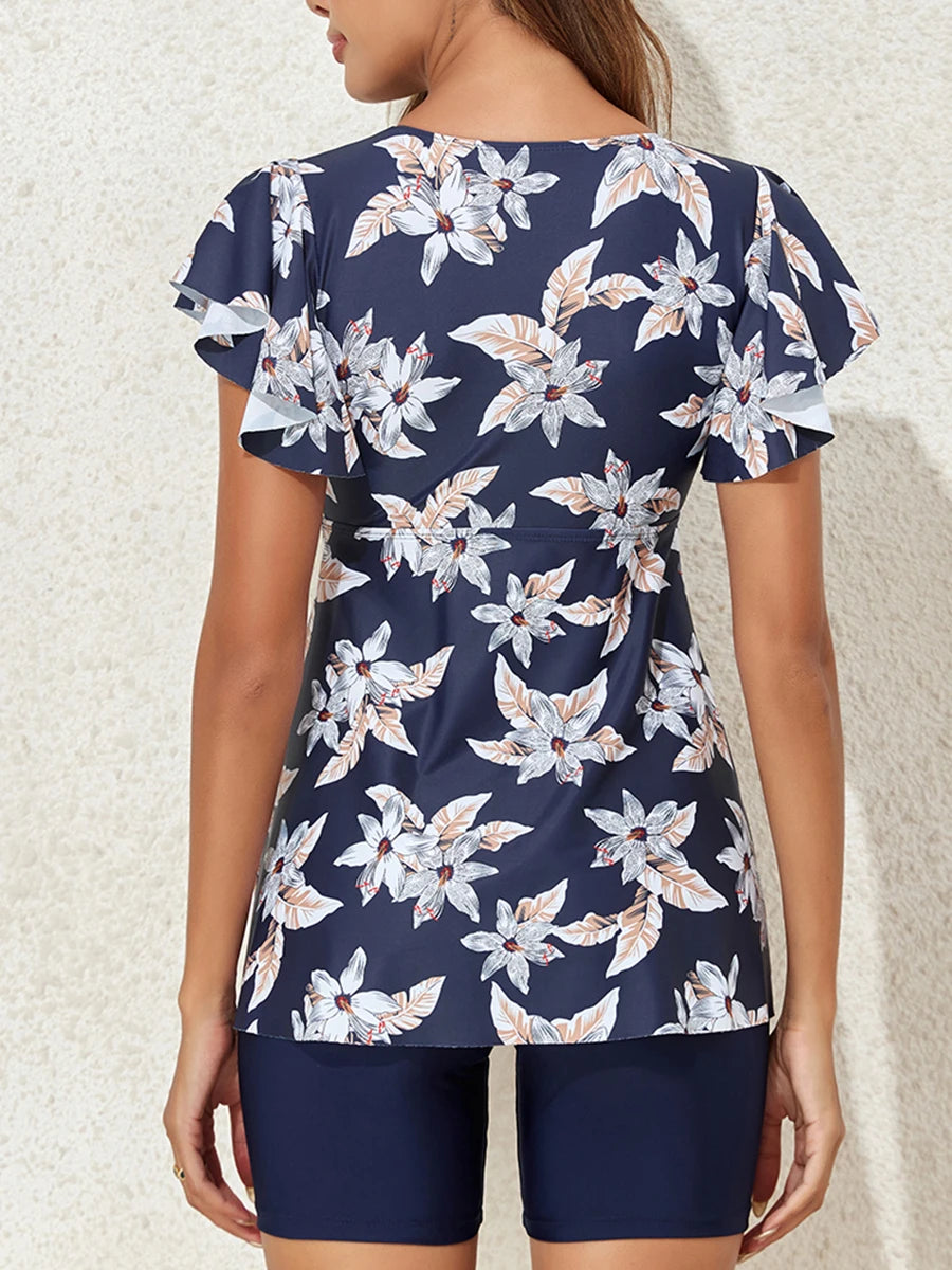 Floral Tankini Two Pieces Ruffle Swimsuit Women With Shorts High Waist Swimwear Female Bathing Suit Mayo Beach Bathers