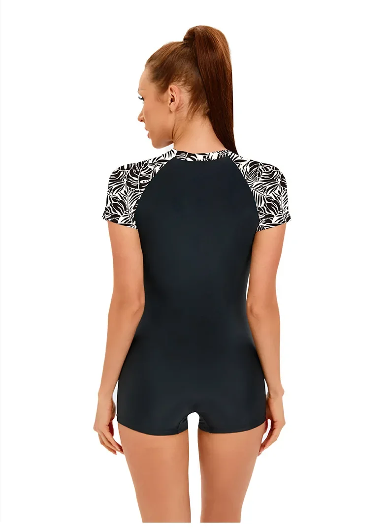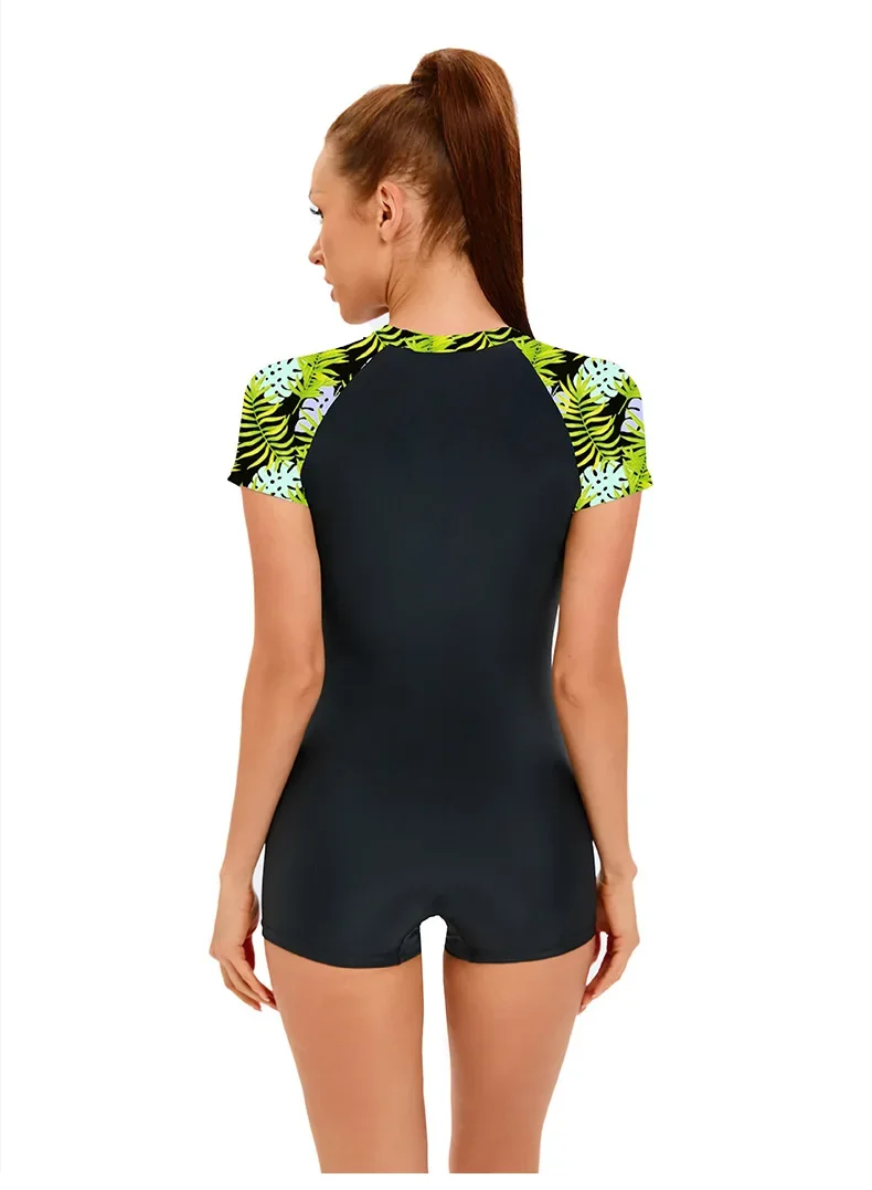 Flower Printed Sport Swimsuit Women's One-Piece Swimwear Quick-Dry Fabric Bathing Suit
