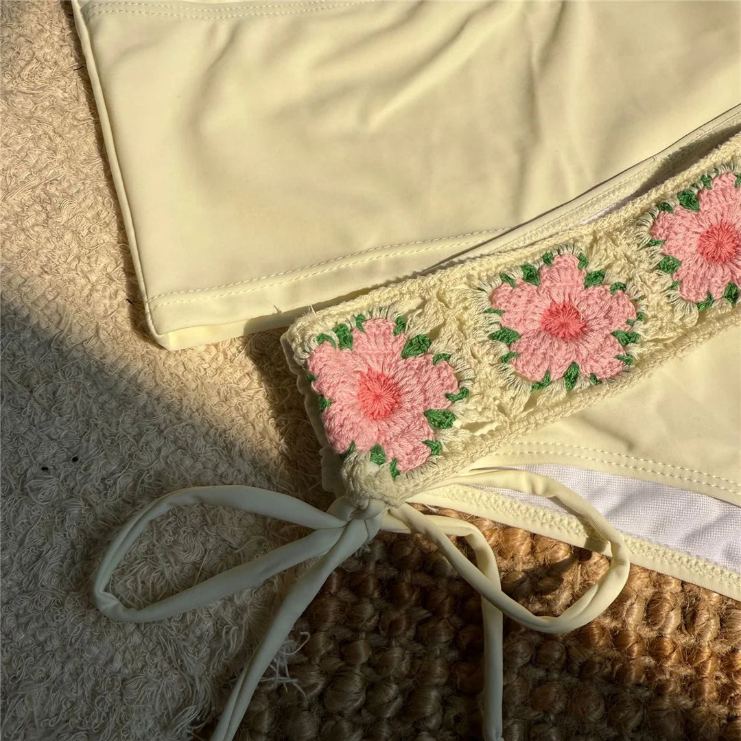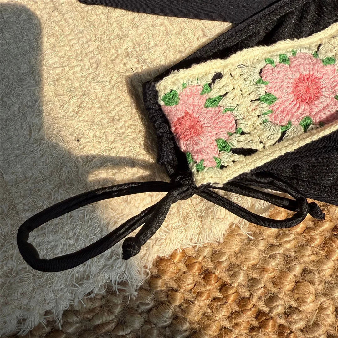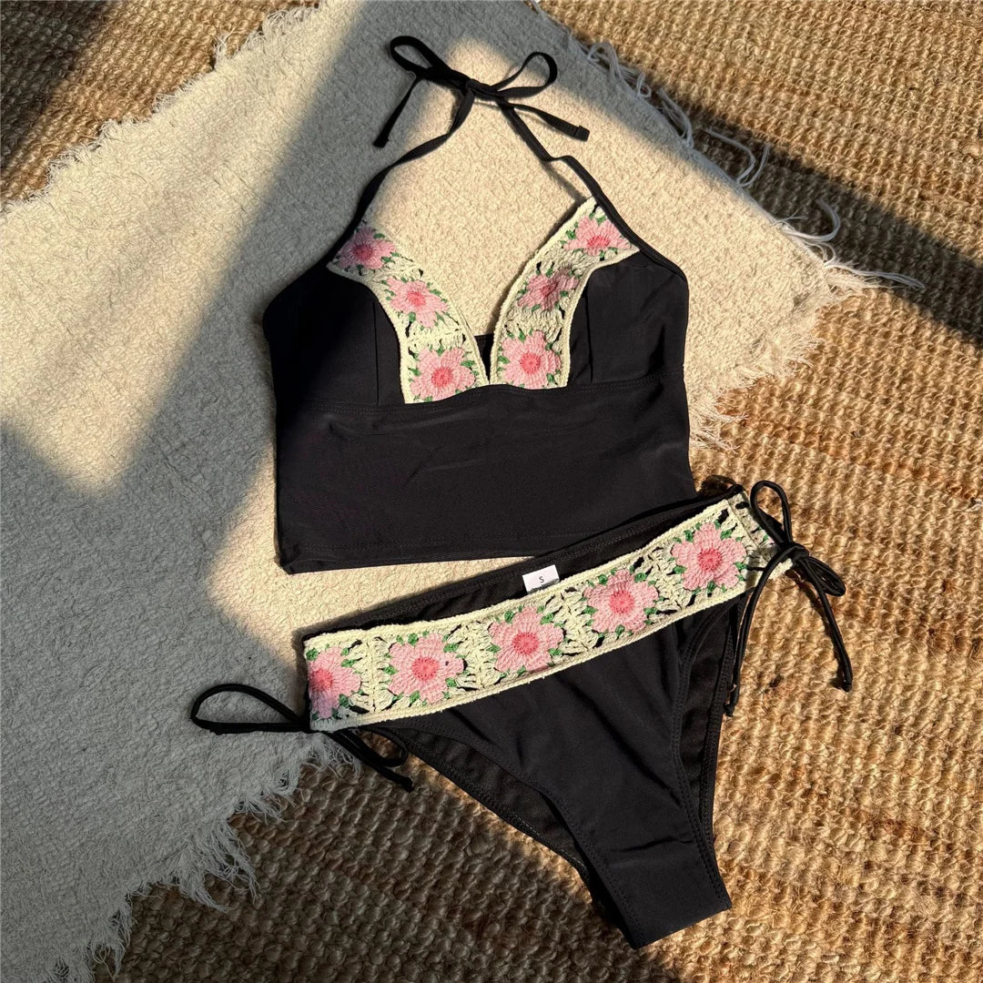 Flowers Printed V Neck Halter Bikini Female Swimsuit Women Swimwear Two-pieces Bikini set Padded Bather Bathing Suit Swim
