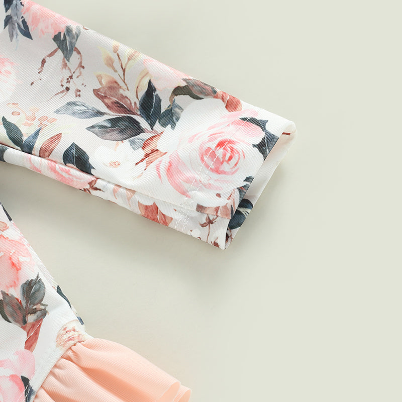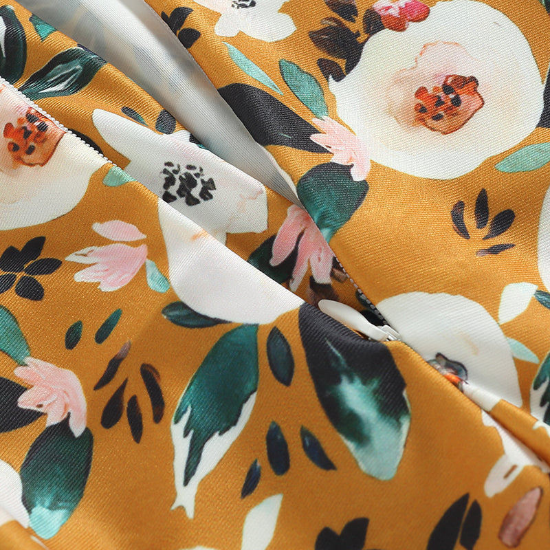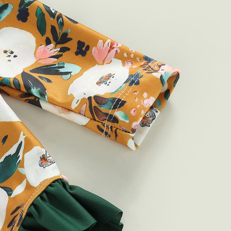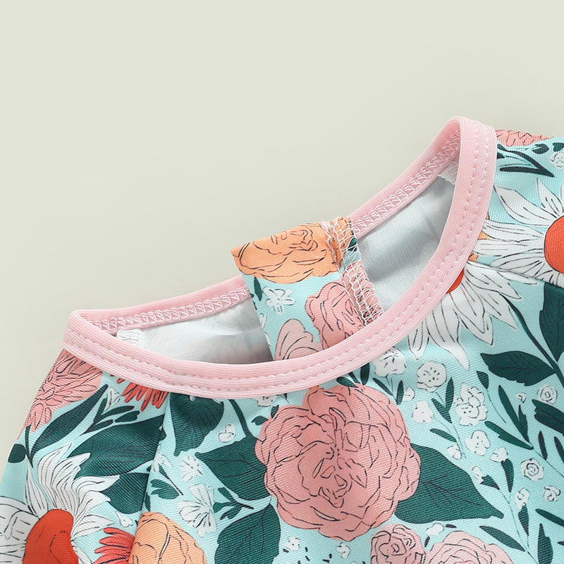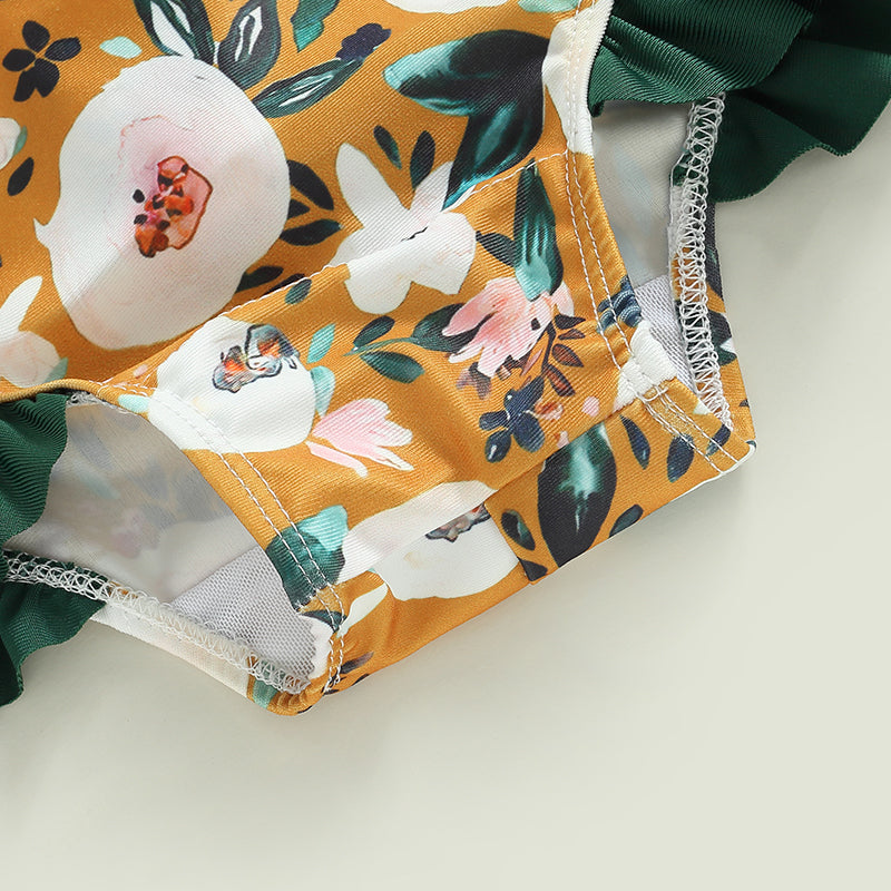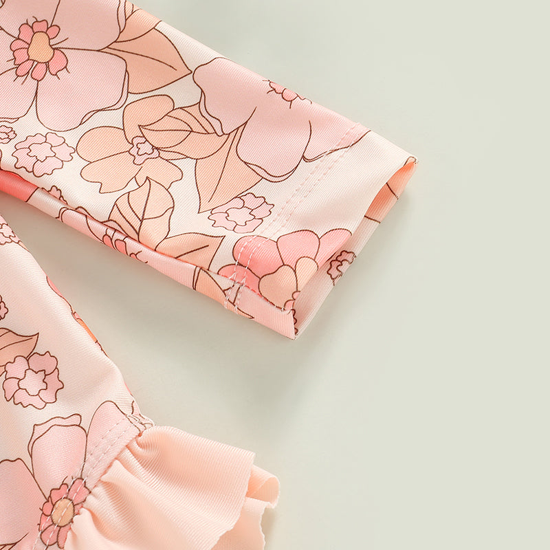 Toddler Baby Girl Jumpsuit Swimsuit, Flower Print Long Sleeve Round Neck Ruffle Bikini Bathing Sui