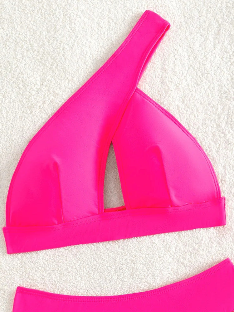 Elevate your swimwear collection with this expert-designed two-piece bikini featuring a stylish one-shoulder silhouette and delicate fringe tassels. The high-waist bottoms provide a flattering fit while the hollow-out detailing adds a modern, breathable touch. Crafted to combine fashion with function, this set offers comfort and support for confident beach or poolside wear. Perfect for those seeking a unique yet sophisticated look in women's swimwear.