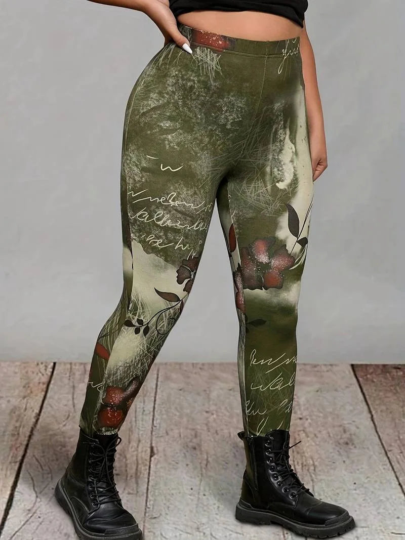 GIBSIE Plus Size Fashion High-Street Printed Leggings Women Sports Casual Slim High-waisted Skinny Pencil Leggings Female