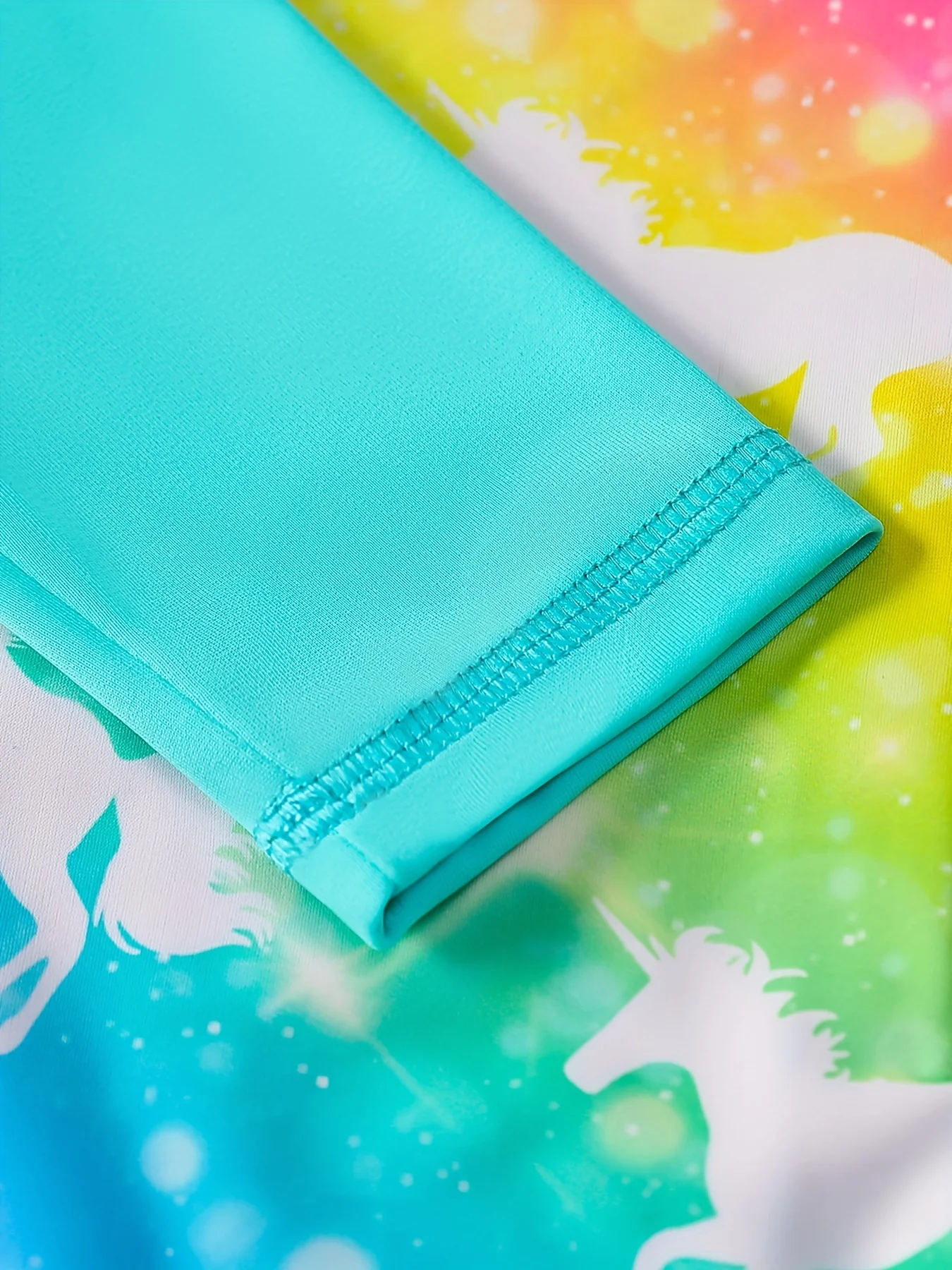 This vibrant one-piece swimsuit combines sun protection with playful style for young swimmers. The long sleeves provide UPF coverage during extended water activities, while the rainbow base with charming horse print captures kids' imaginations. Designed as a functional rash guard, it resists chlorine and saltwater while offering freedom of movement for confident swimming. Perfect for beach days, pool sessions, or summer adventures, this durable piece keeps your daughter comfortable and protected all season long.