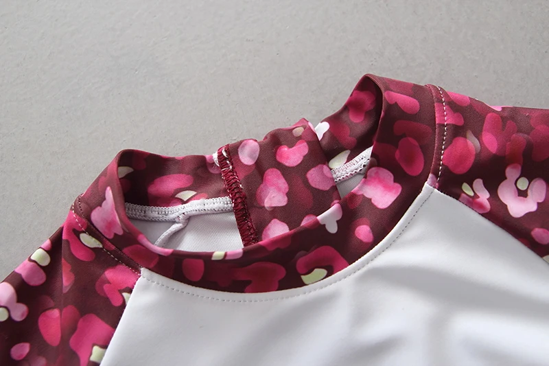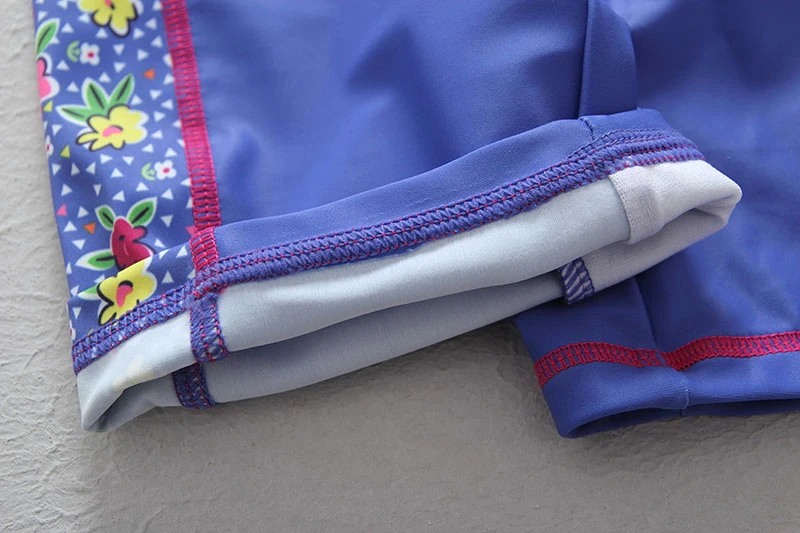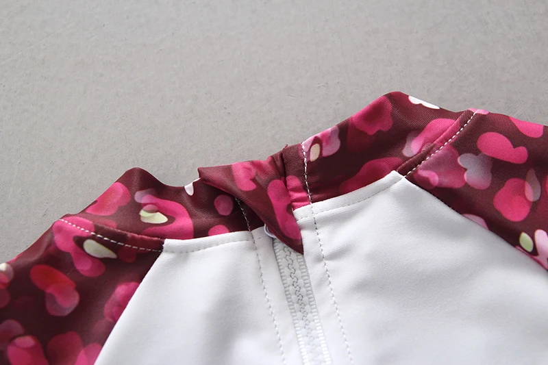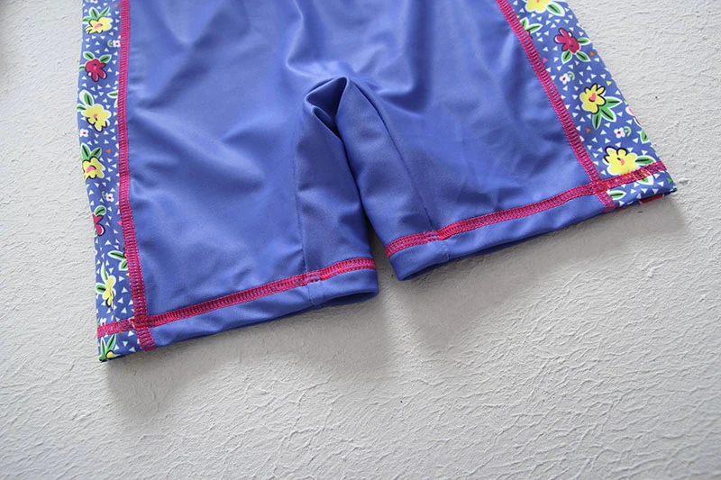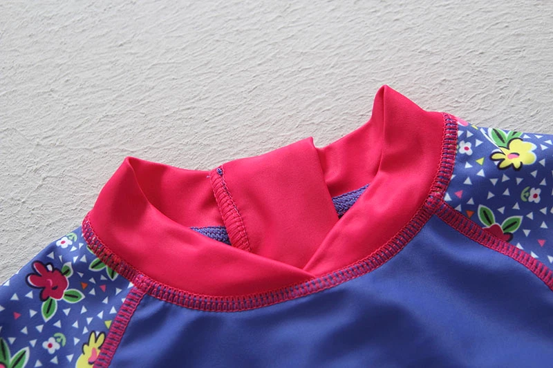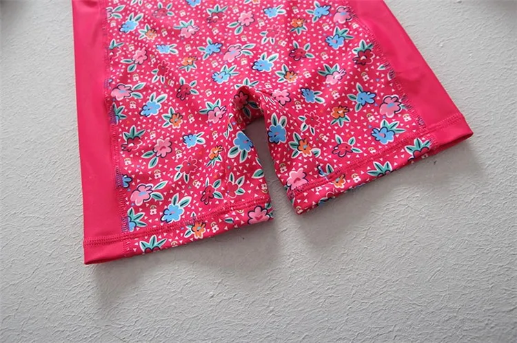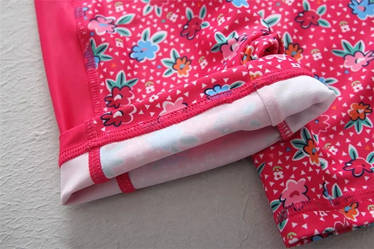 UPF 50+ sun protection with cartoon floral & flamingo print, this rashguard set keeps her cute and protected all day long.