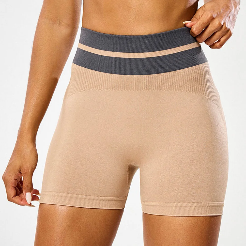 High Waist Color Block Yoga Pants for Women Non-Slip Workout Running Shorts Peach Booty Lift Spandex Nylon Solid Style