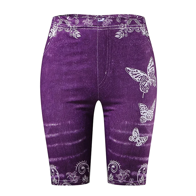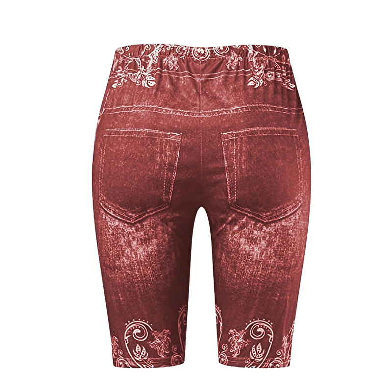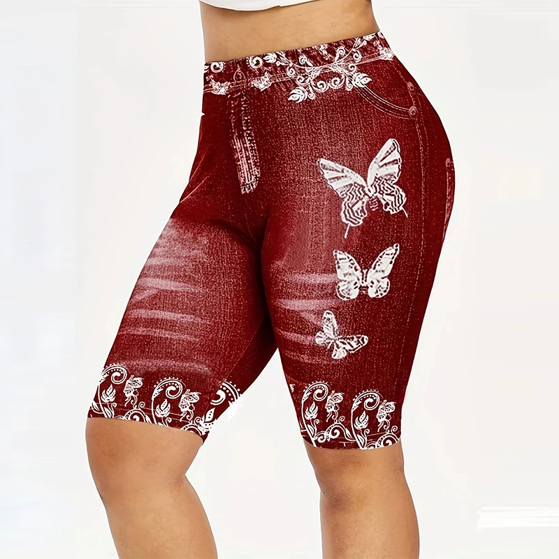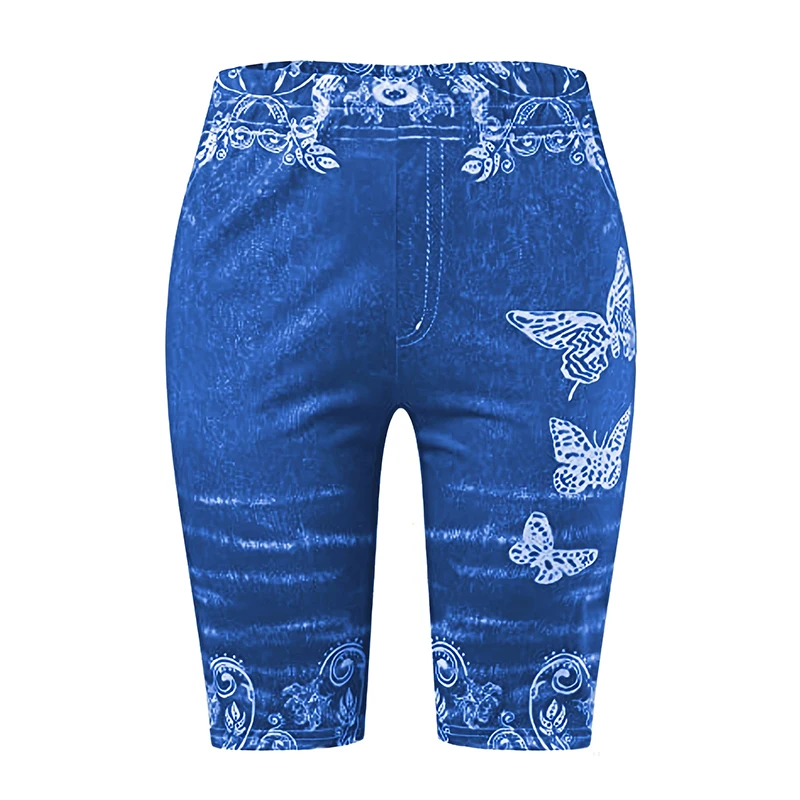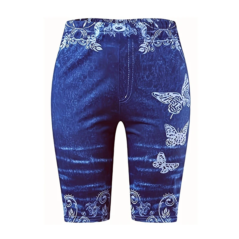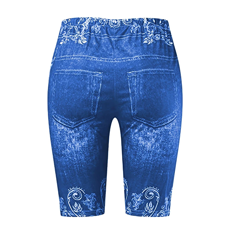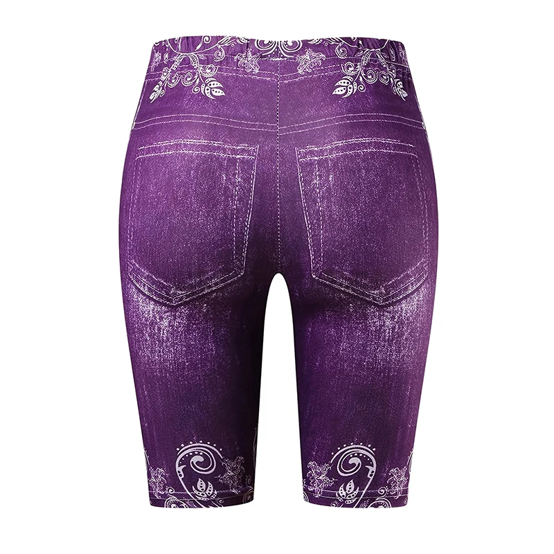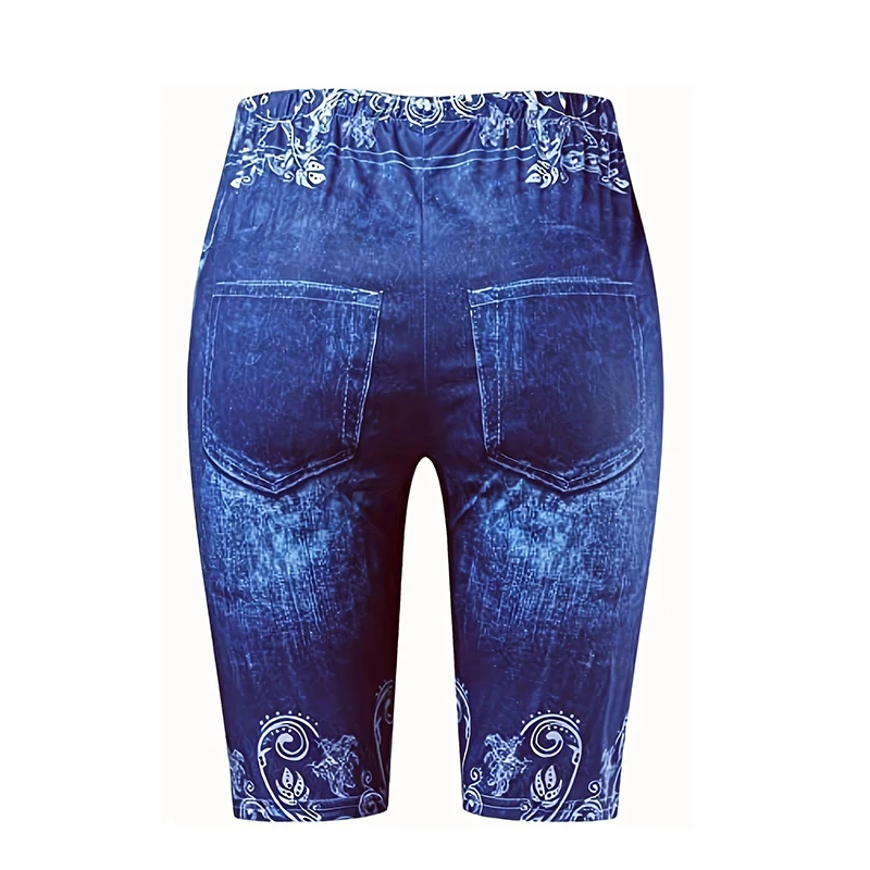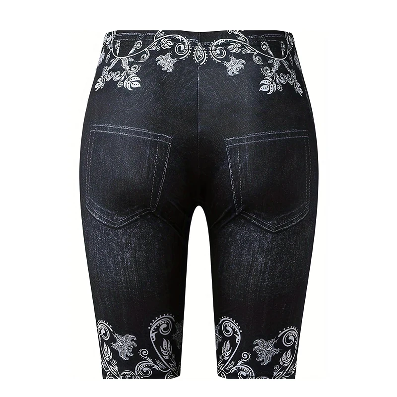 High Waist Women's Leggings Comfy Faux Denim Floral Geometric Patterns Y2K Style - Perfect for Yoga Casual Wear