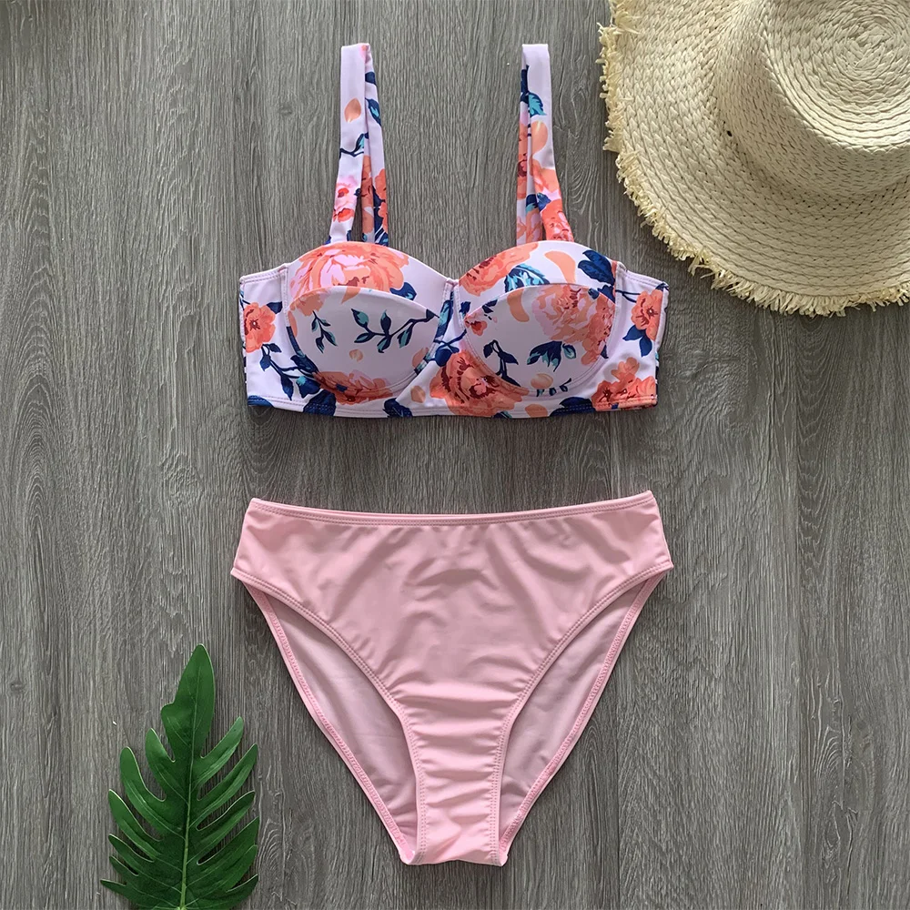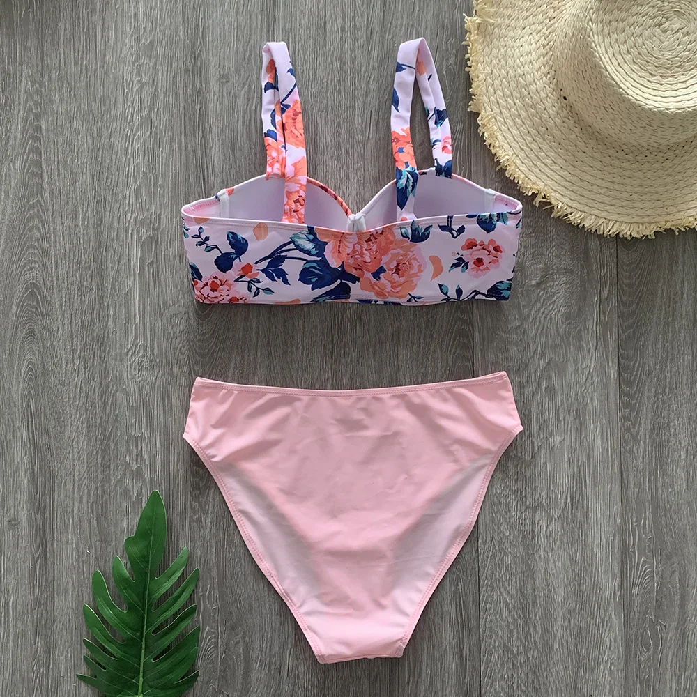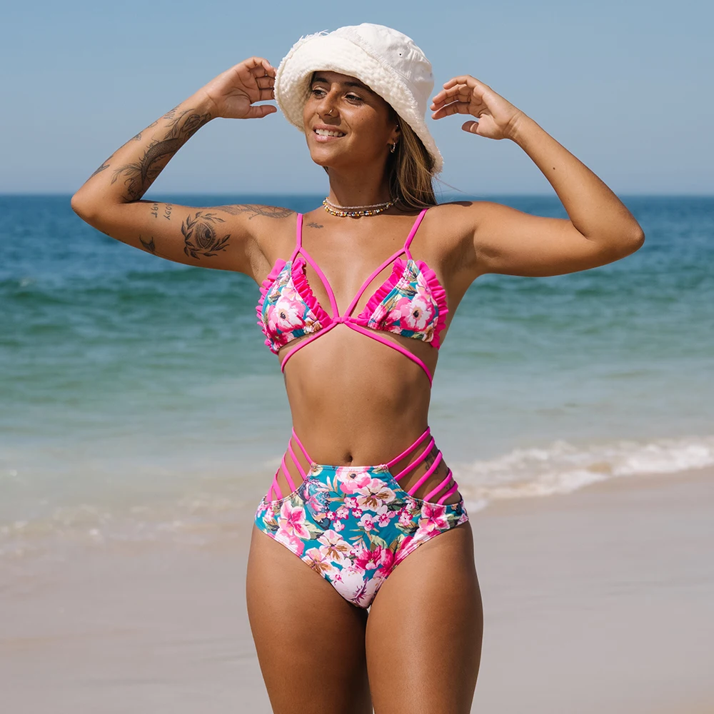 High Waisted Bikini Sets Lace Up Floral Swimsuits Two Pieces Swimwear Women Beach Bathing Suit