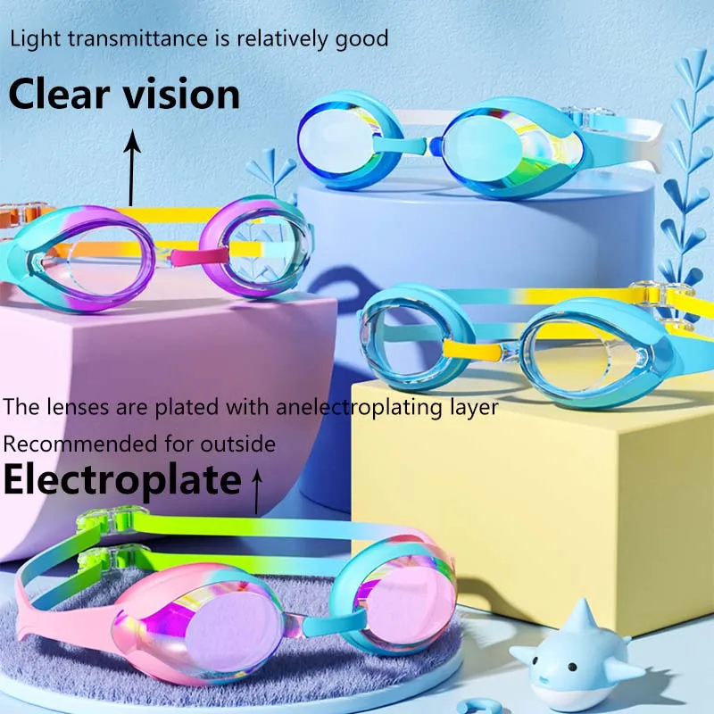 Kids Swimming Goggles Anti-fog Waterproof HD View Children Swim Goggles for Boys and Girls Electroplate and Clear Lens to Choose