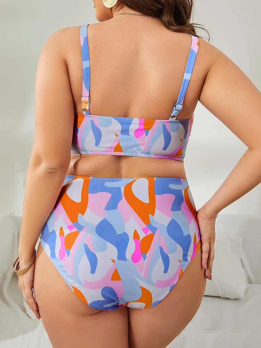Embrace confidence at the beach with this thoughtfully designed plus-size bikini. The high-waist cut provides excellent support and coverage while flattering your silhouette, while the vibrant printed pattern adds personality to your swimwear collection. Crafted for comfort and durability, this two-piece swimsuit delivers reliable performance whether you're swimming laps, lounging poolside, or enjoying a day at the beach. The quality construction ensures it withstands regular wear and chlorine exposure, making it a practical investment for active swimmers and beach enthusiasts alike.