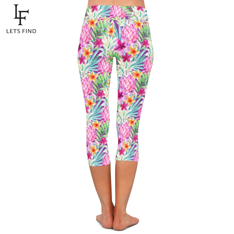 Flowers Digital Printing Fitness Capri Leggings High Waist Mid-Calf 3/4 Leggings
