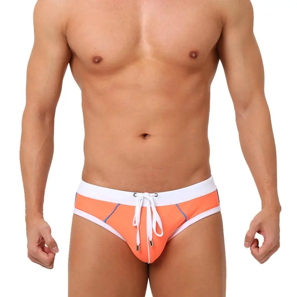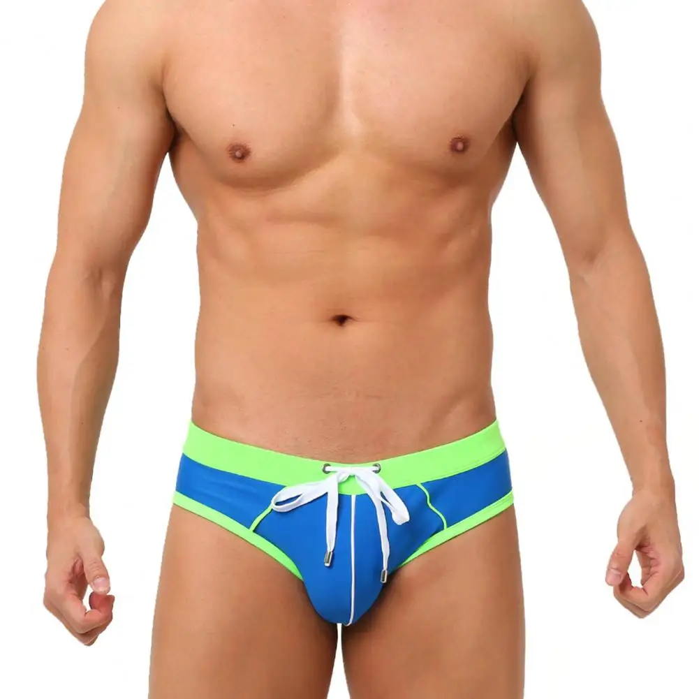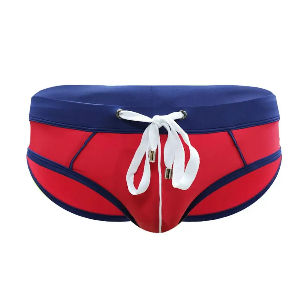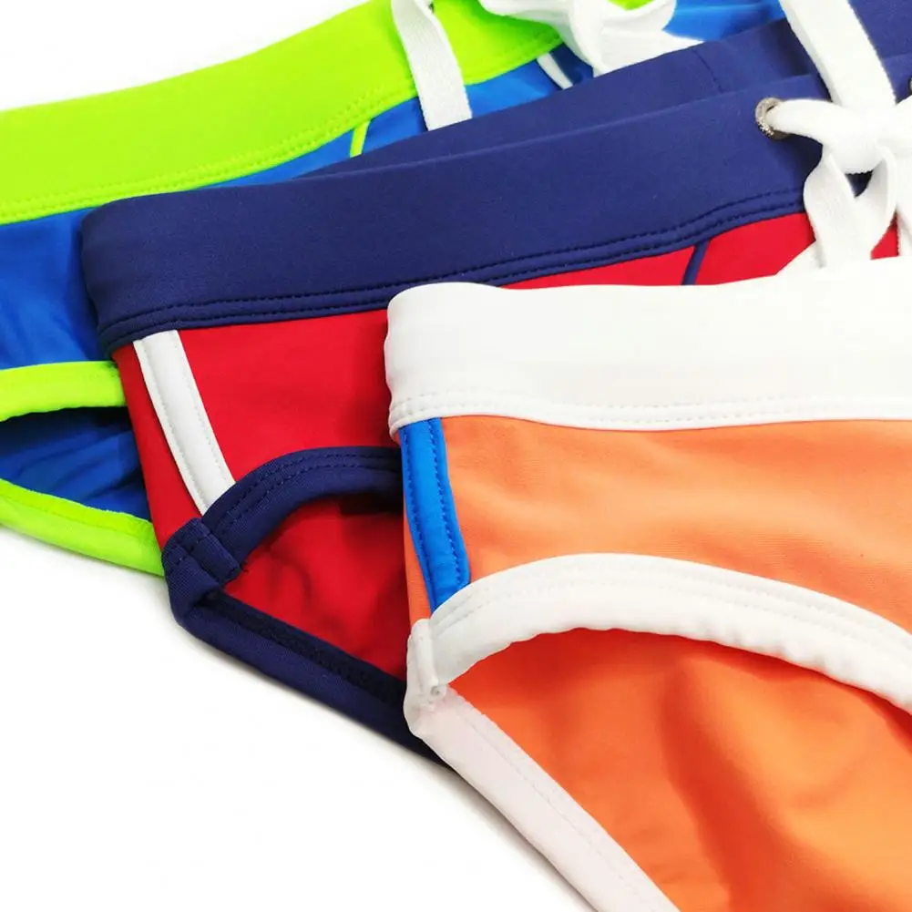 Men Summer Swimming Trucks Mid-rise Drawstring Patchwork Color Swimming Briefs Quick-Drying Stretch Beach Surfing Briefs