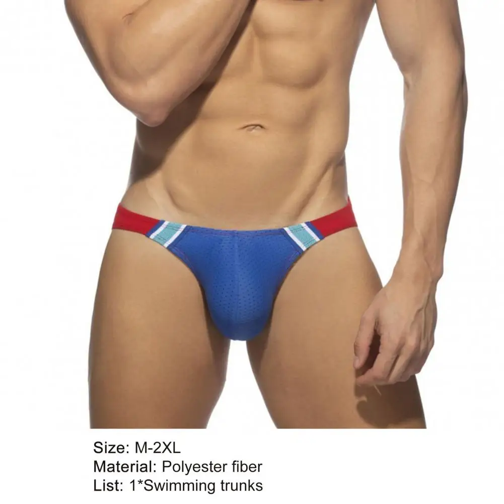 Men Swimming Trunks Contrast Color Jockstrap Comfortable Low Waist U Convex Men Swimwear Surfing Clothes
