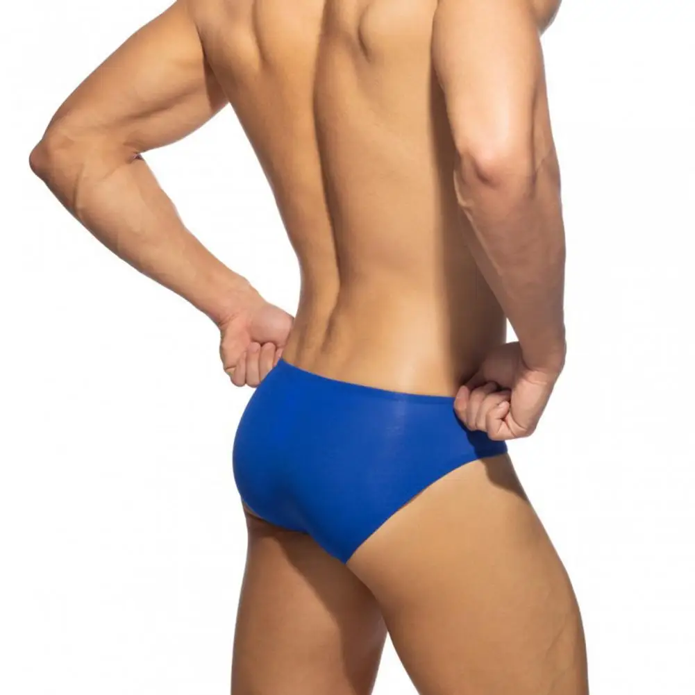 Engineered for active swimmers and water sports enthusiasts, these men's swimming trunks combine functional design with contemporary style. The integrated push pad provides enhanced support and comfort during extended water activities, while the contrast-color jockstrap detail adds visual interest. Cut with a low-waist profile and contoured U-convex construction, they deliver a streamlined fit that moves with your body. Ideal for swimming, surfing, and beach training, these trunks balance performance features with everyday wearability.