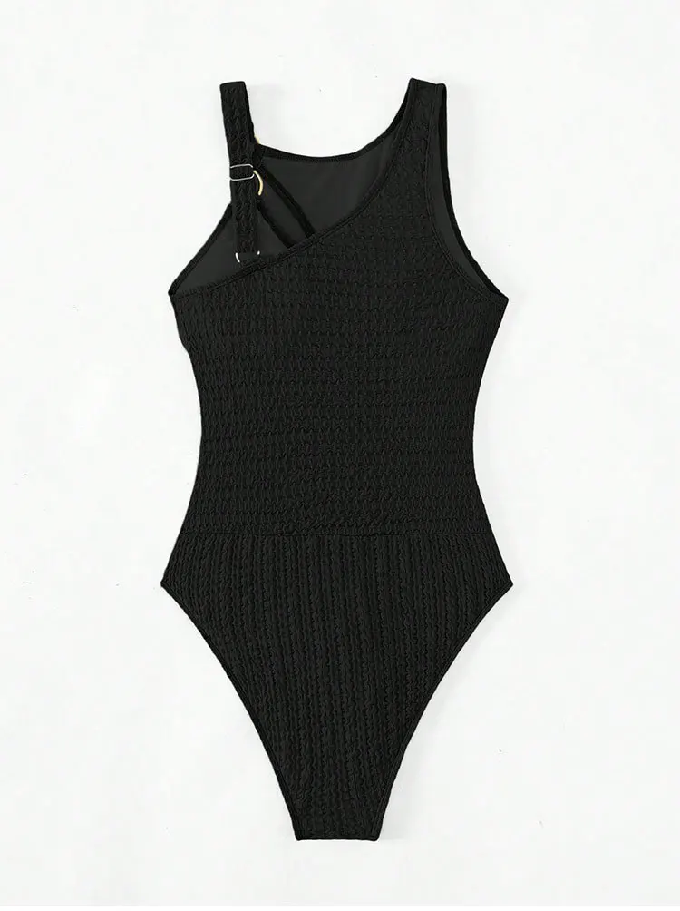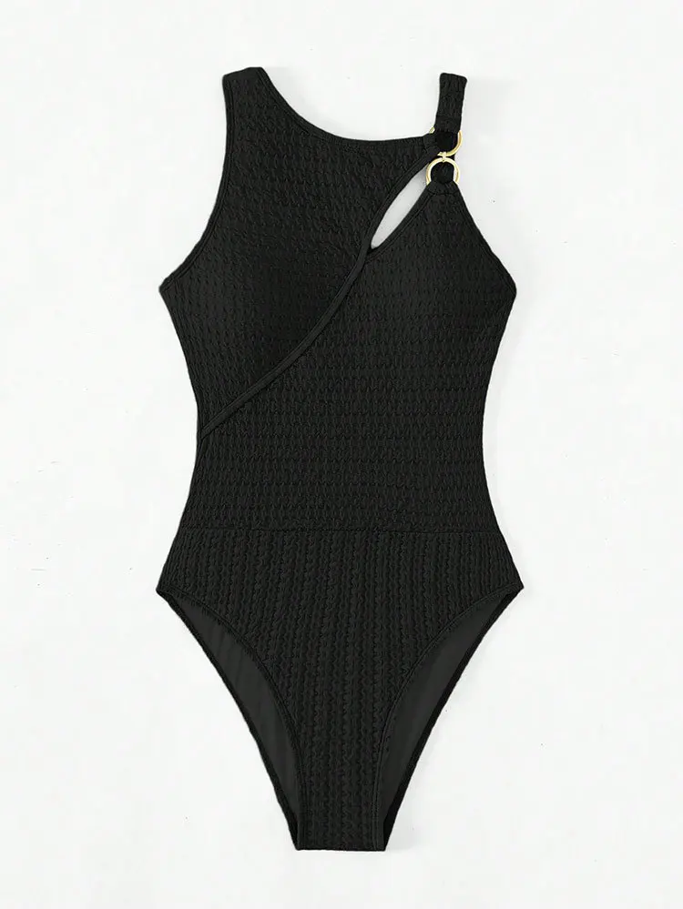 Summer Solid Color One-Piece Swimsuit Ladies Black Hollow Conservative Swimwear Beach Swimming Bathing Suit for Women
