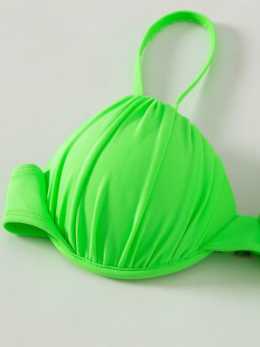 Neon Green Wrinkled Underwired Bra Cup Bikini Female Swimsuit Women Swimwear Two-pieces Bikini set Bather Bathing Suit Swim Lady