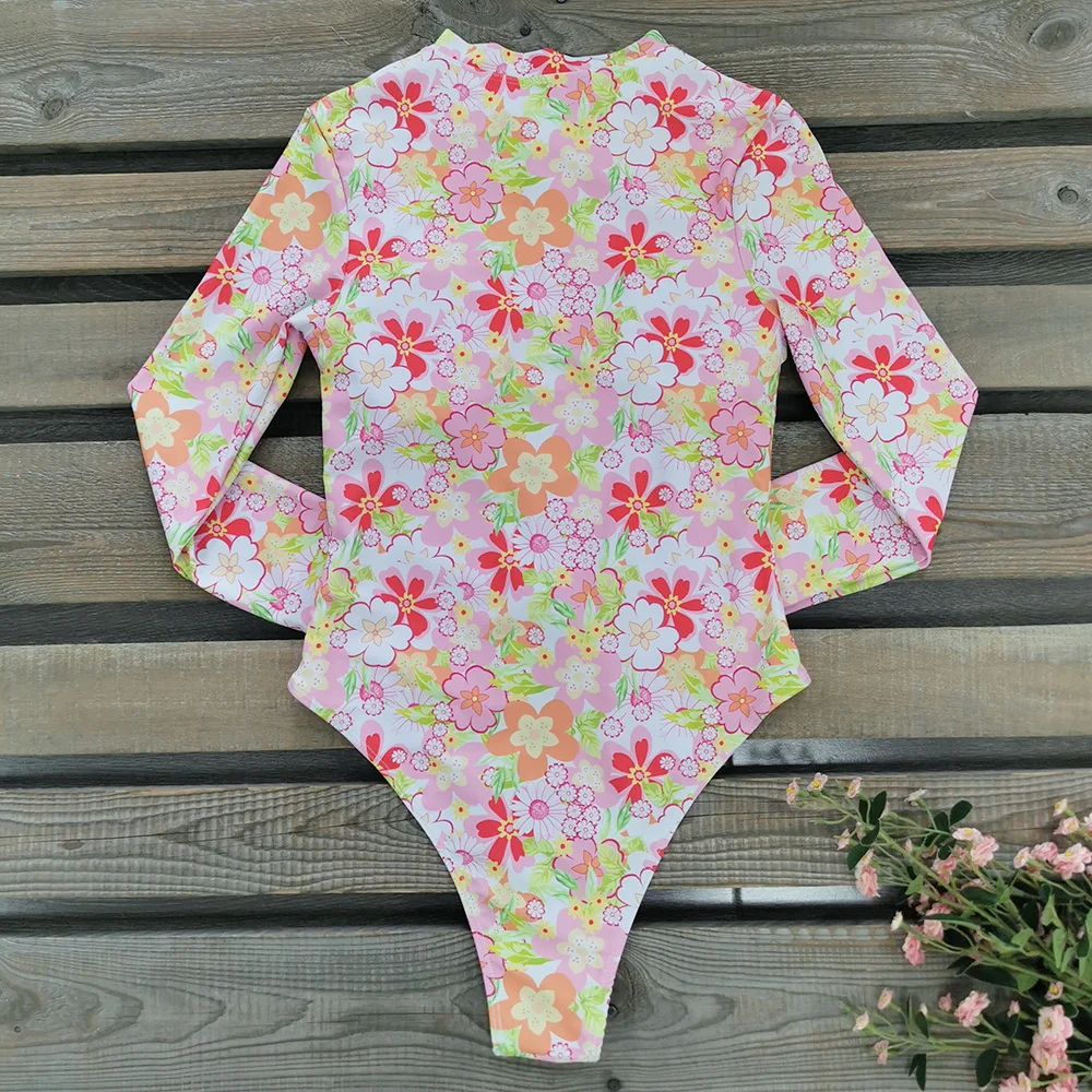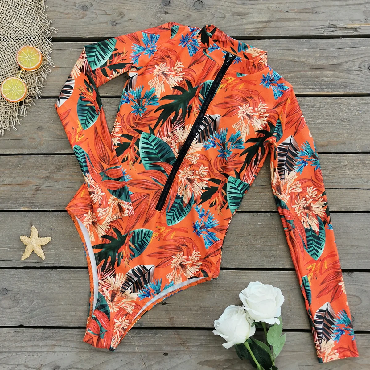 Long Sleeve One Piece Swimsuit Swimwear Women Surf Swim Suit Push Up Bathing Suit Beachwear Monokini Bath Suits