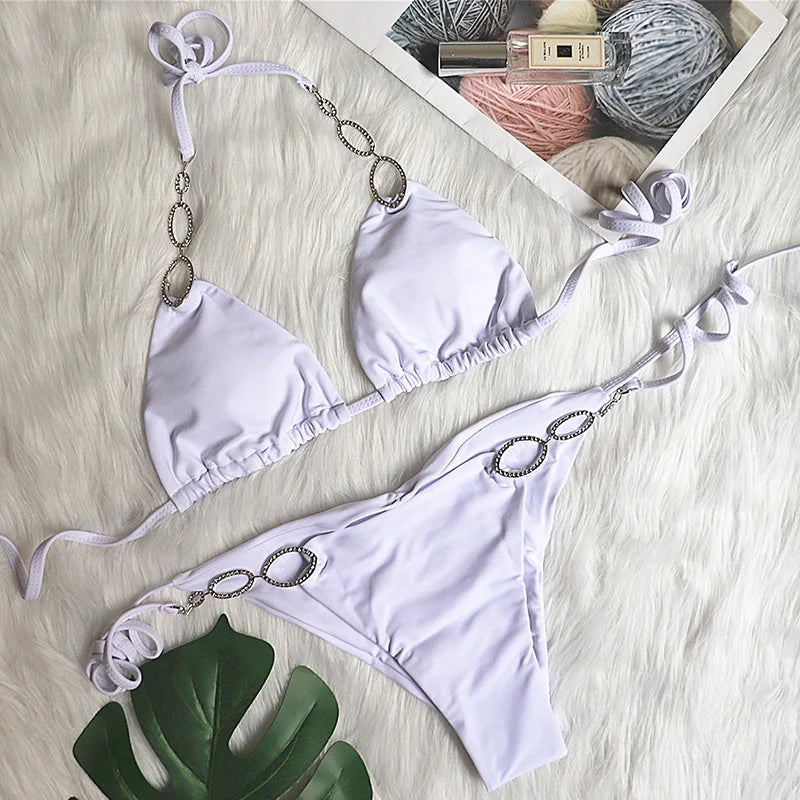 Shiny Crystal Diamond Bikini Women Halter Bandage Swimsuit Female Swimwear Rhinestone Bikini set Brazilian Bathing Suit