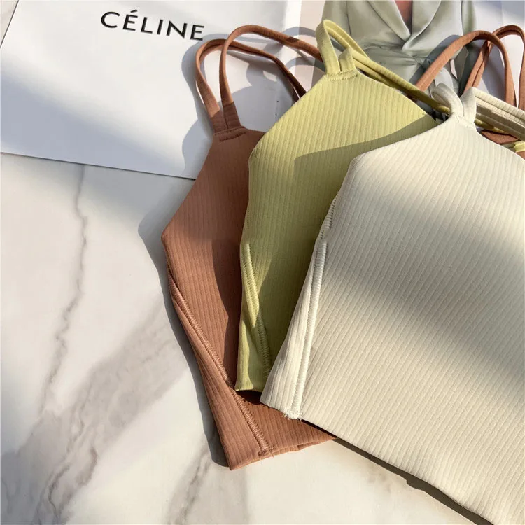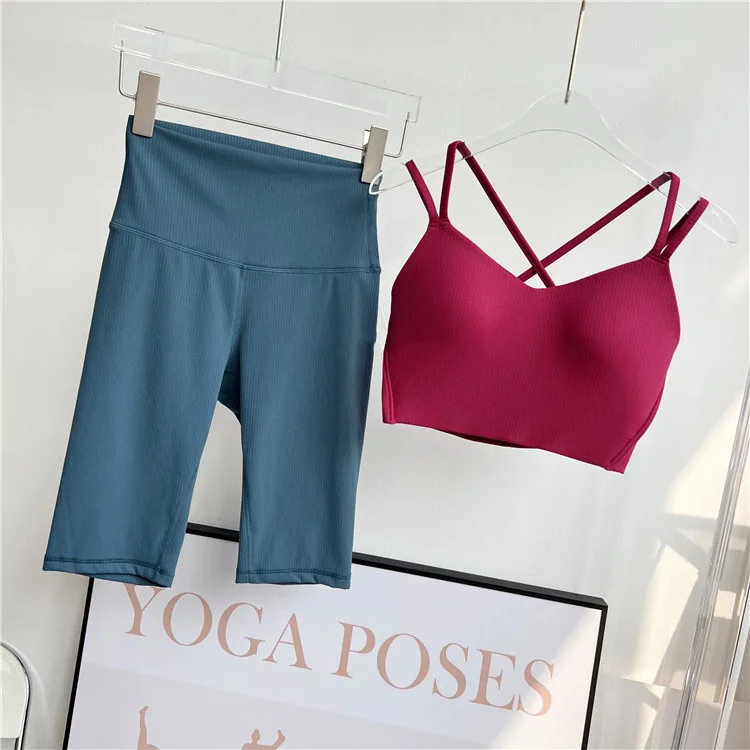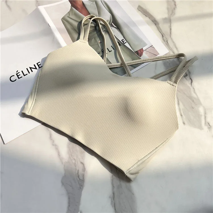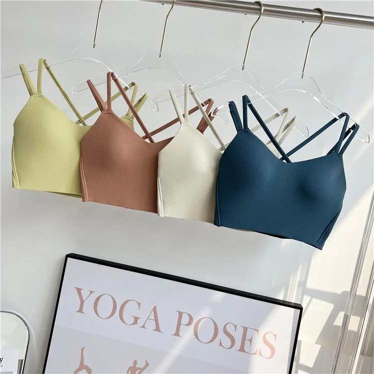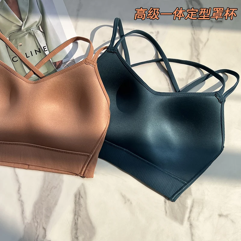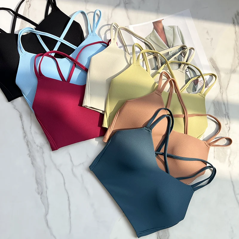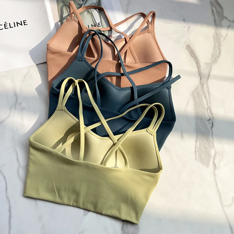 One piece Strappy Yoga Gym Bras Active Wear Women Criss Cross Strap Wireless Sports Bras Top Athletic Brassiere