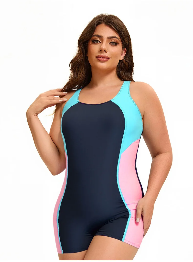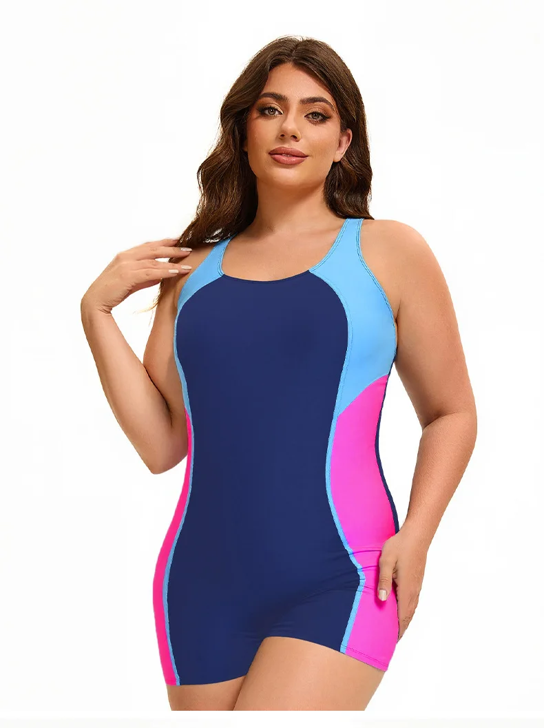Engineered for confident swimming and water activities, this one-piece swimsuit combines functional design with flattering coverage. The boyleg cut offers extended leg coverage while the integrated tummy control panel smooths and supports your silhouette. Built with a sporty aesthetic, it delivers reliable performance across all body types and sizes. The durable fabric resists chlorine and saltwater, maintaining its shape and colour through regular use. Perfect for lap