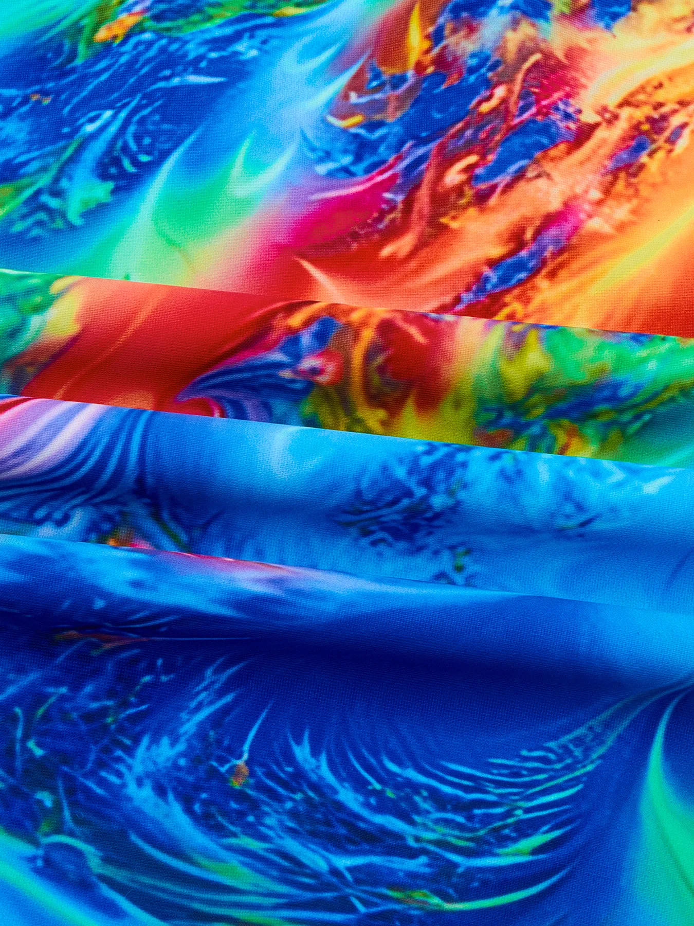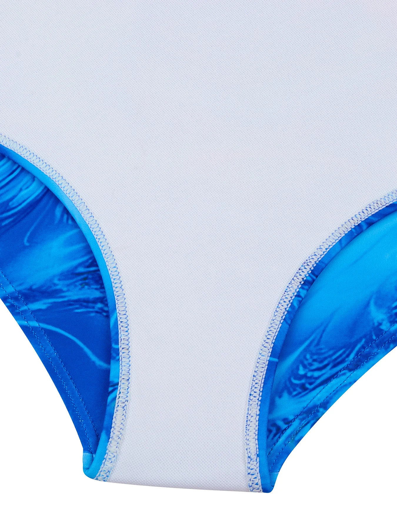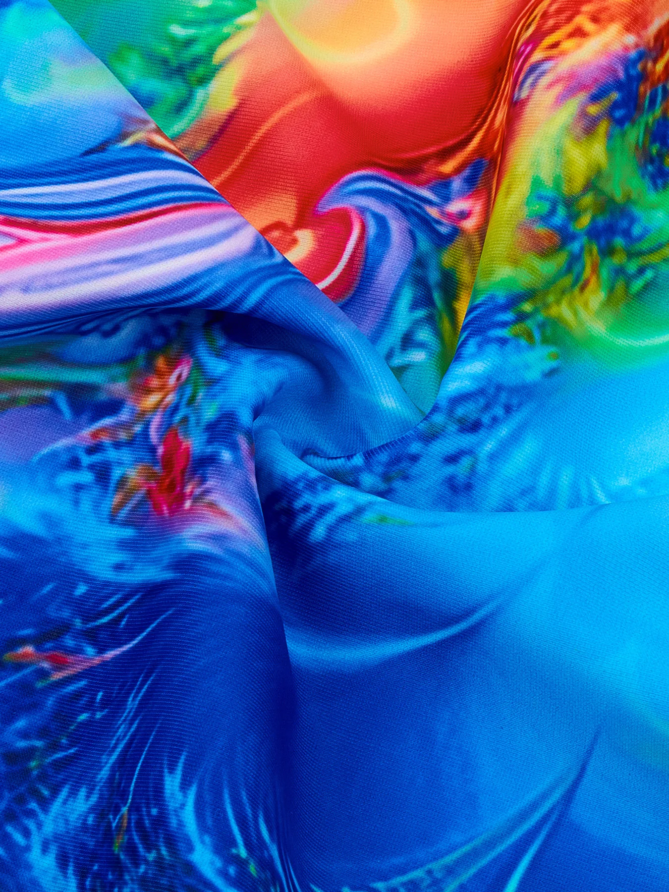 This vibrant one-piece swimsuit combines style and practicality for young swimmers. Featuring an eye-catching allover colorful print, it delivers visual appeal that kids love. The sleeveless design offers freedom of movement for active play, while the bikini-cut bottom provides a modern silhouette. Crafted for comfort during beach and pool sessions, this toddler-friendly piece is an essential addition to any child's summer wardrobe. Durable construction ensures it withstands regular water activities and chlorine exposure.