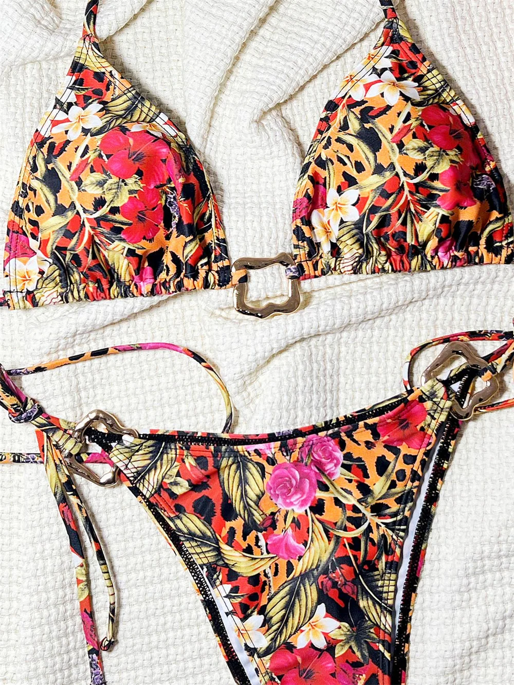 Leopard Floral Brazilian Bikini Set Halter Swimwear Women Swimsuit Backless Biquini Bathing Suit