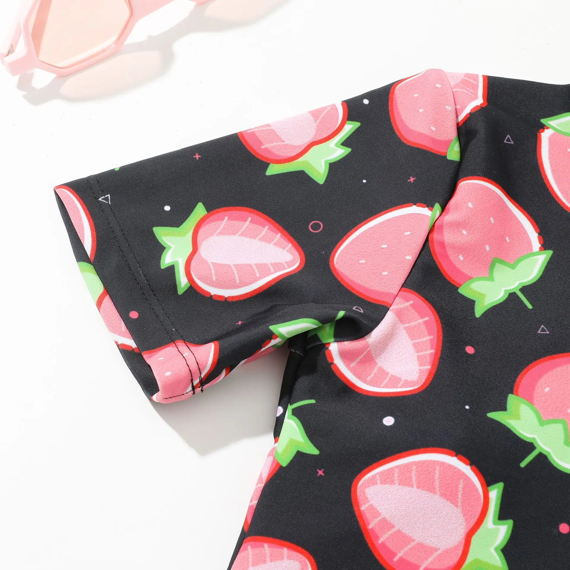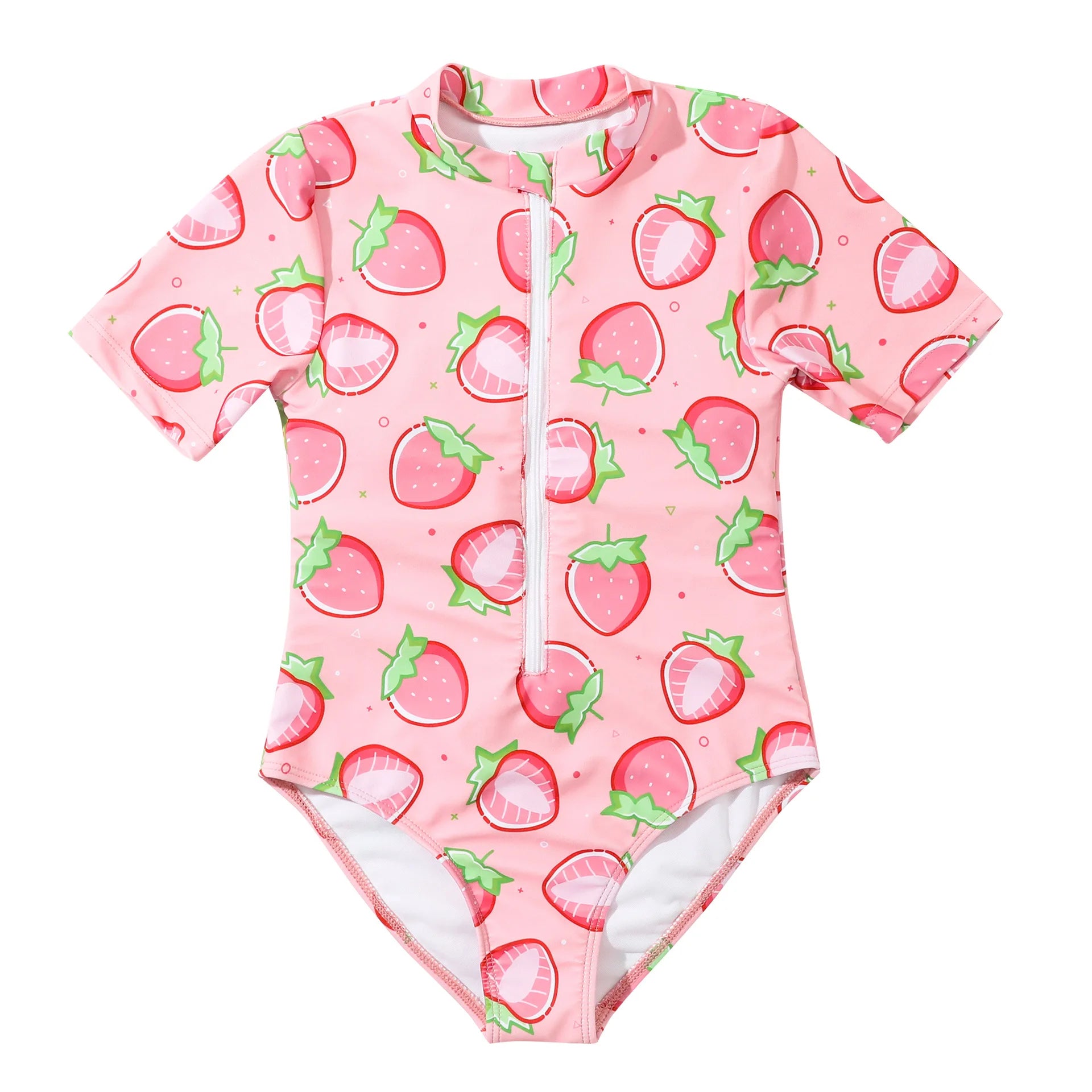 Pink Strawberry Girls One Piece Swimsuit 7-12 Year Kids Swim Suit Zipper Children's Swimwear 2024 Surf Bathing Suits