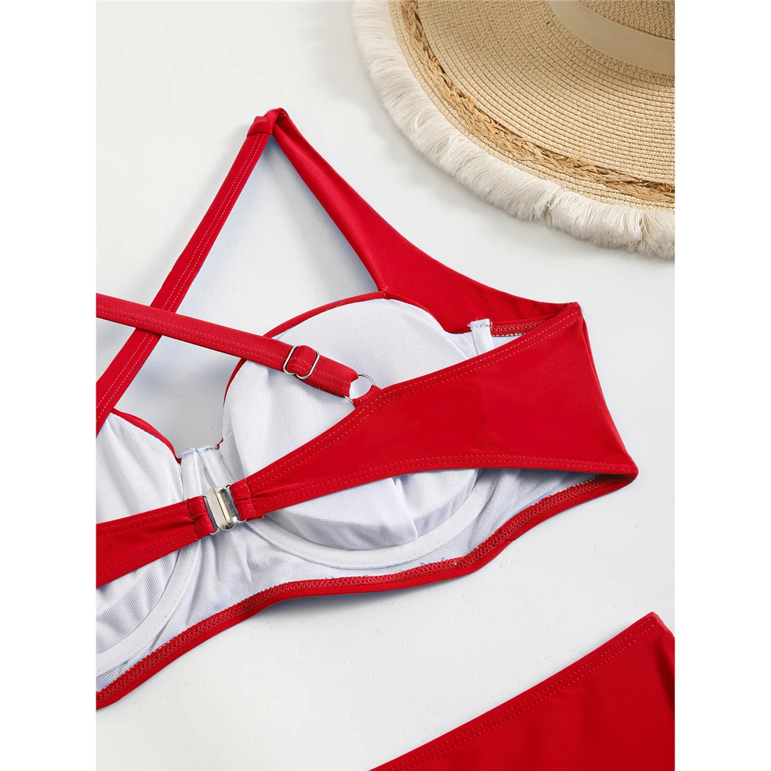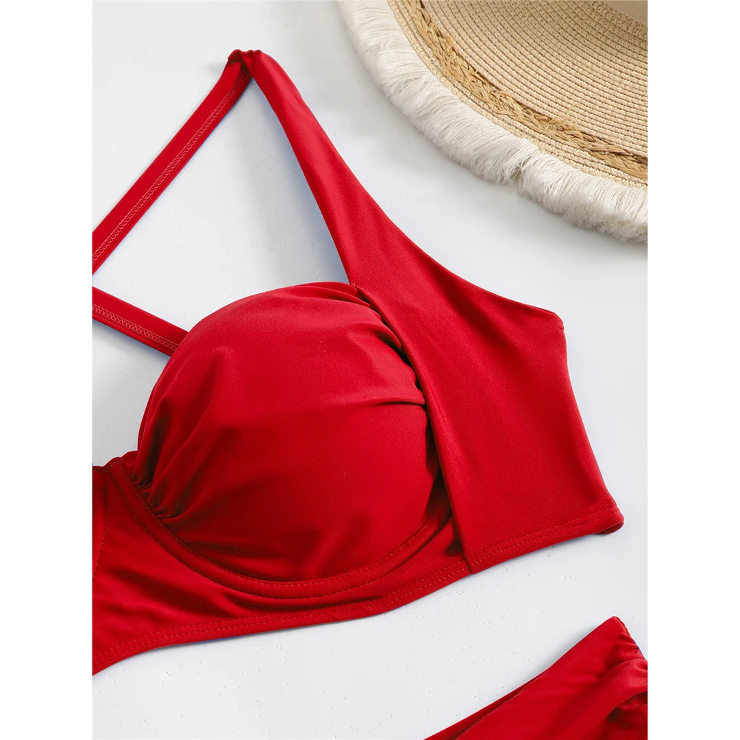 Pleated Underwired Padded Female Swimsuit High Waist Bikini Women Swimwear Two-pieces Bikini set Bather Bathing Suit Swim