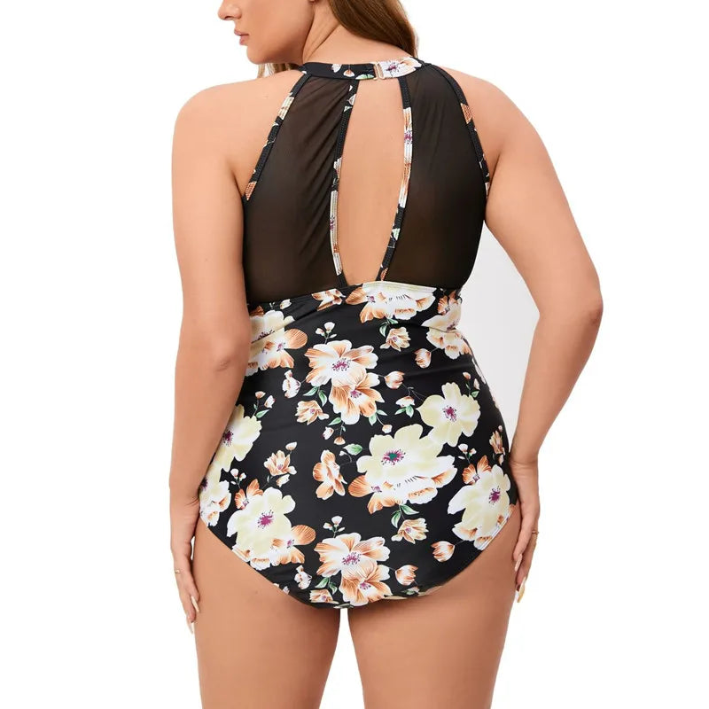 This plus size one-piece swimsuit combines vintage-inspired prints with practical design features for enhanced comfort and style. It offers tummy control to sculpt your silhouette and a push-up effect for added support. Crafted to provide a flattering fit, this monokini-style swimwear balances fashion with function, ensuring confidence at the beach or pool.