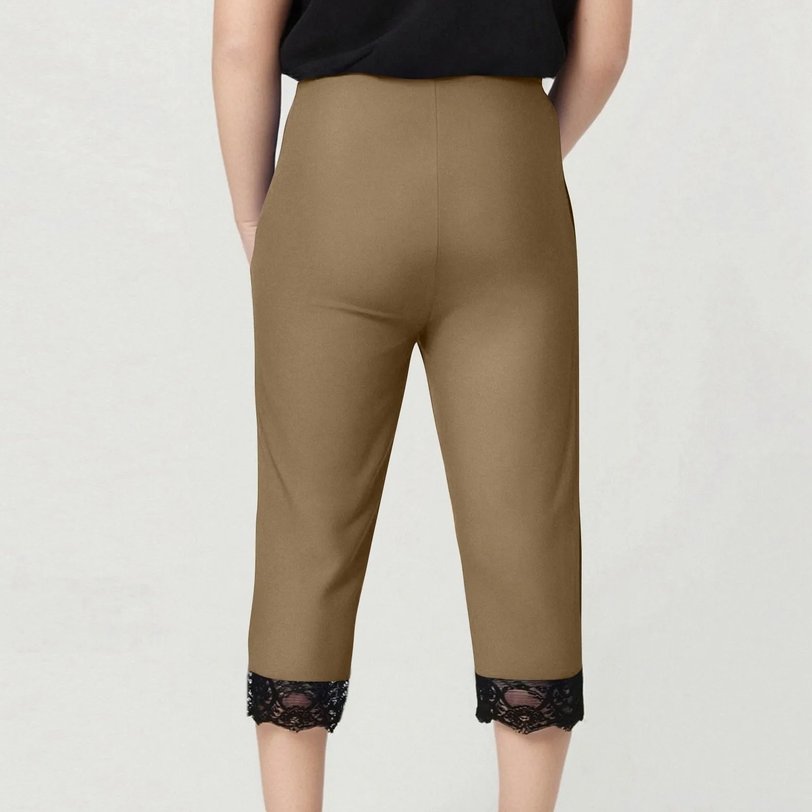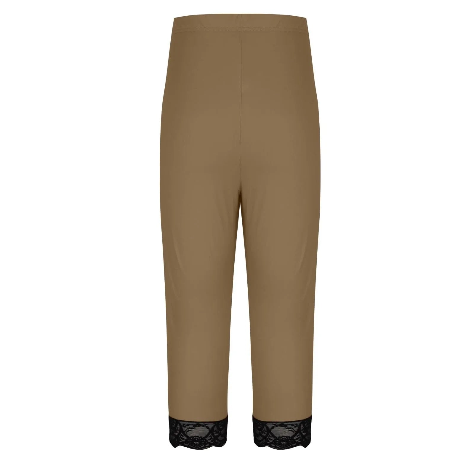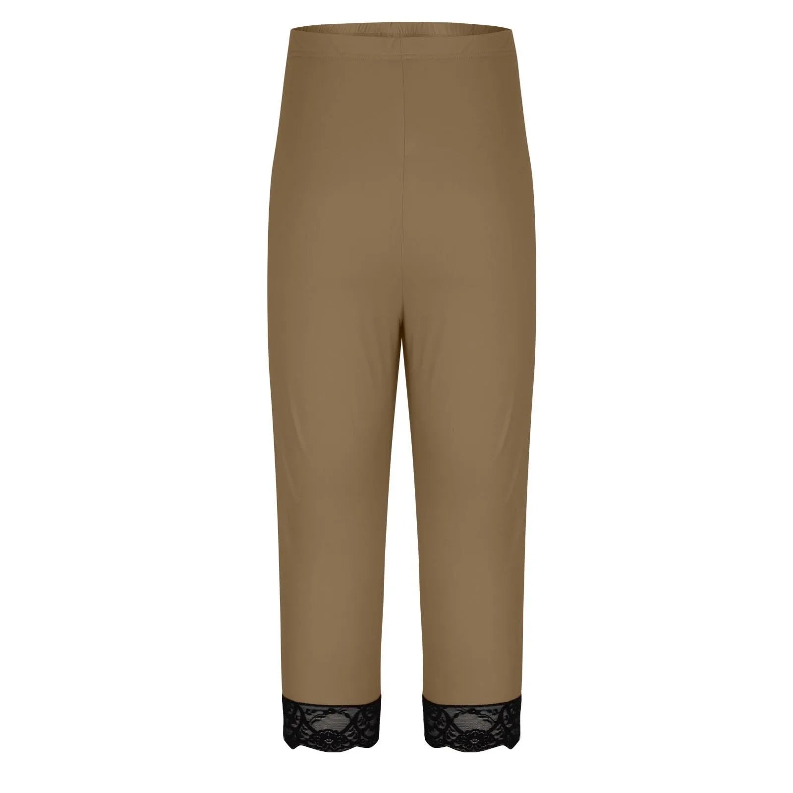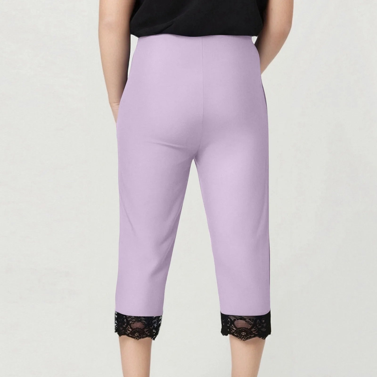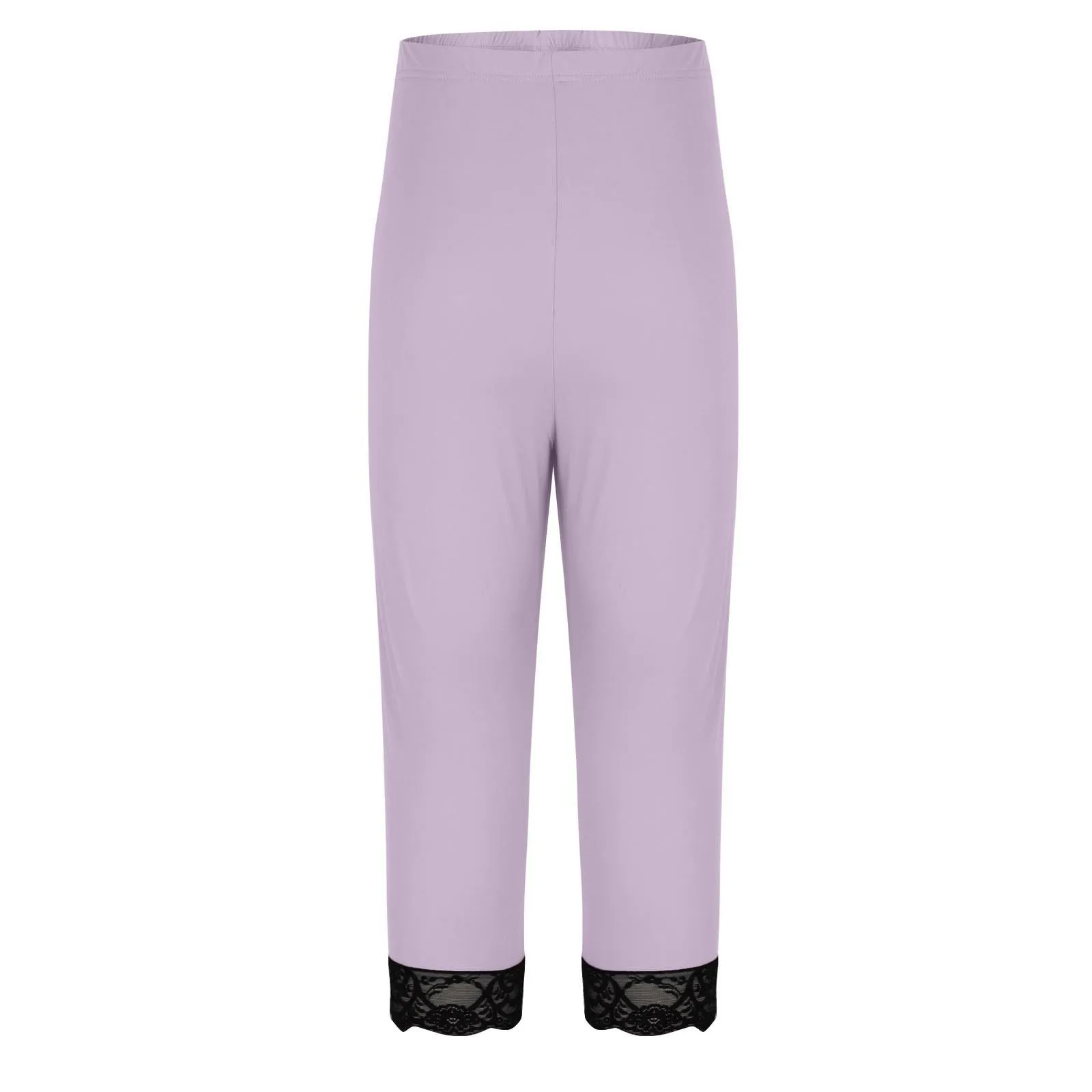 Women's Fashion Solid Color Lace Splicing Bottom Pants With Elastic Waist Sports And Leisure Cropped Pants