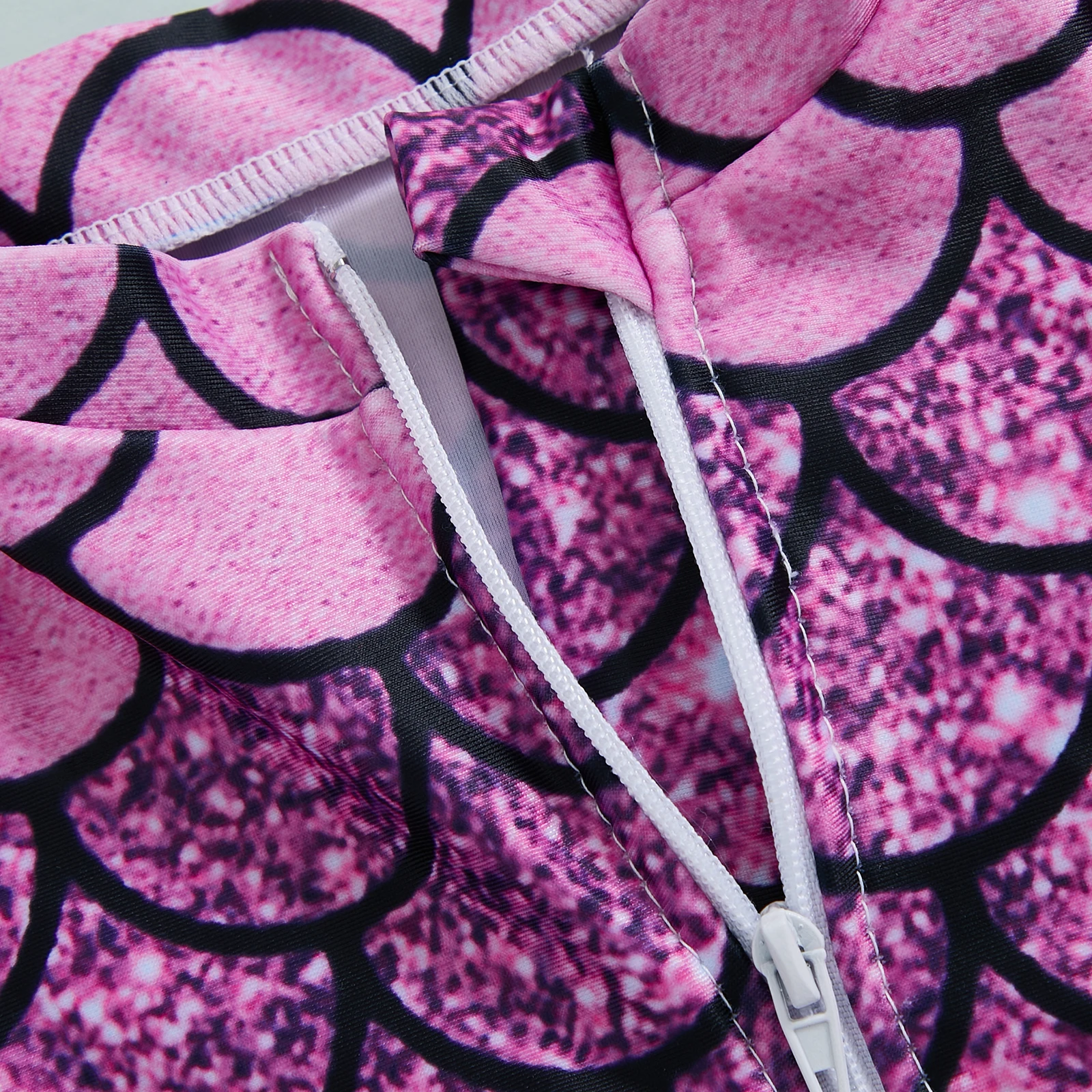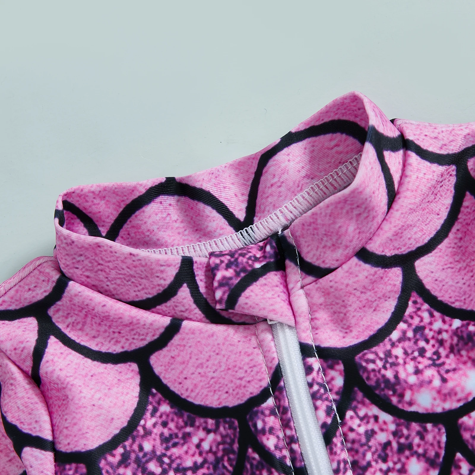 Toddler Girl Rash Guard Swimsuit Fish Scale Print Zipper Long Sleeve Mock Neck Ruffled Bathing Suit