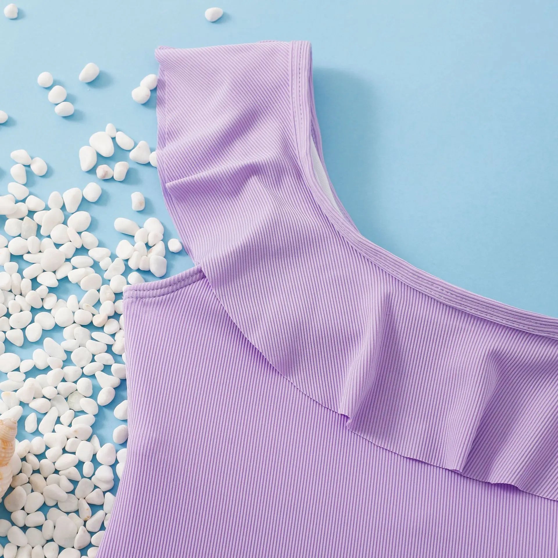 Dress your little one in style with our Purple Ruffle One Piece Swimsuit. Designed for girls ages 7-12, this swimsuit features a ruffle design and is made with high-quality material for maximum comfort. Perfect for the beach or pool, your child will feel confident and fashionable in this adorable swimsuit.