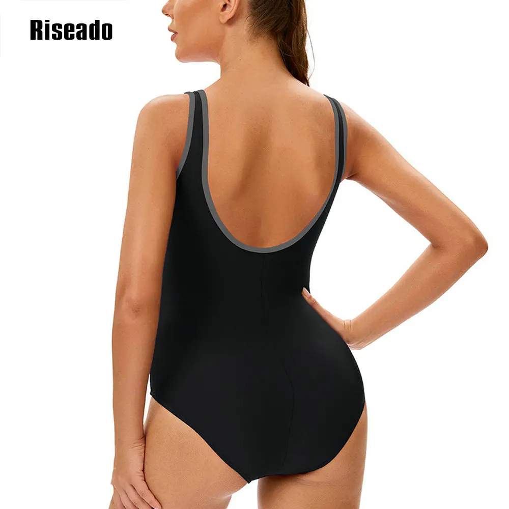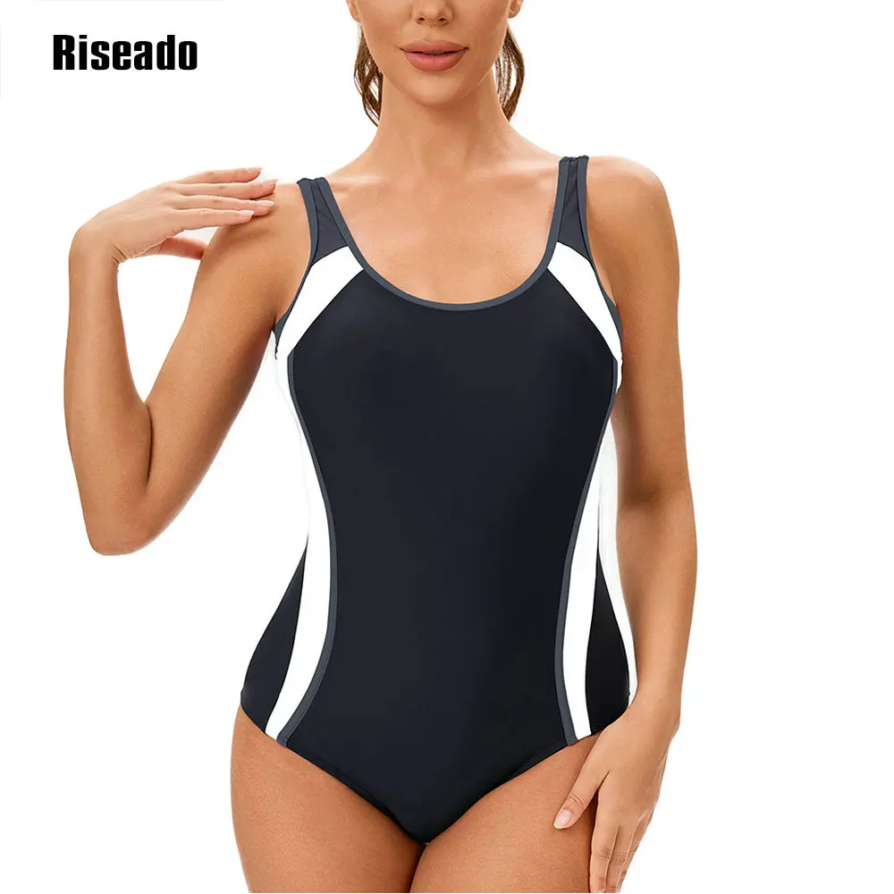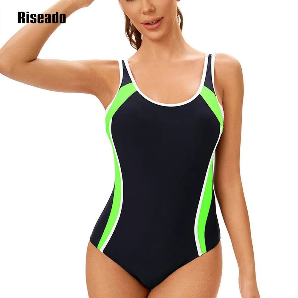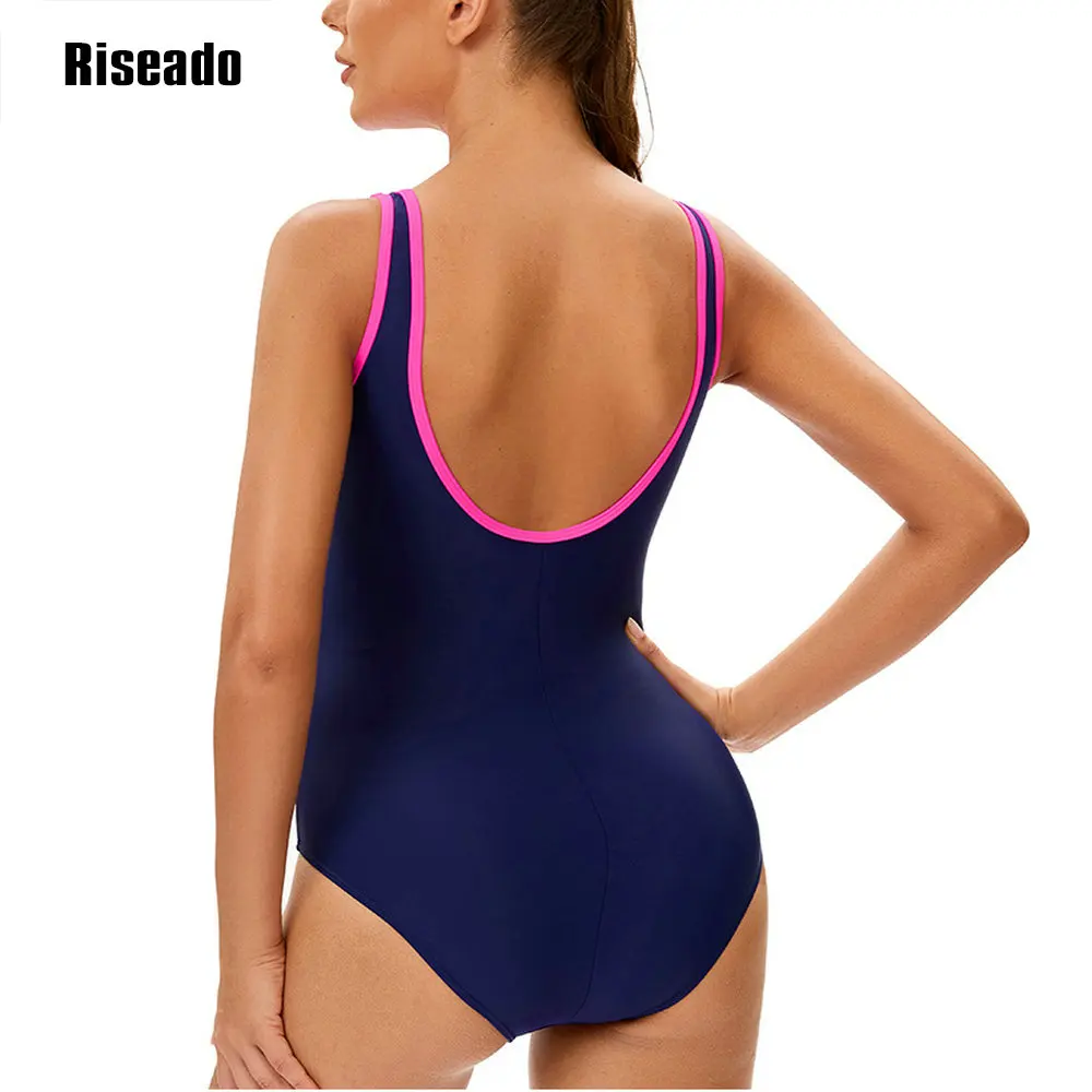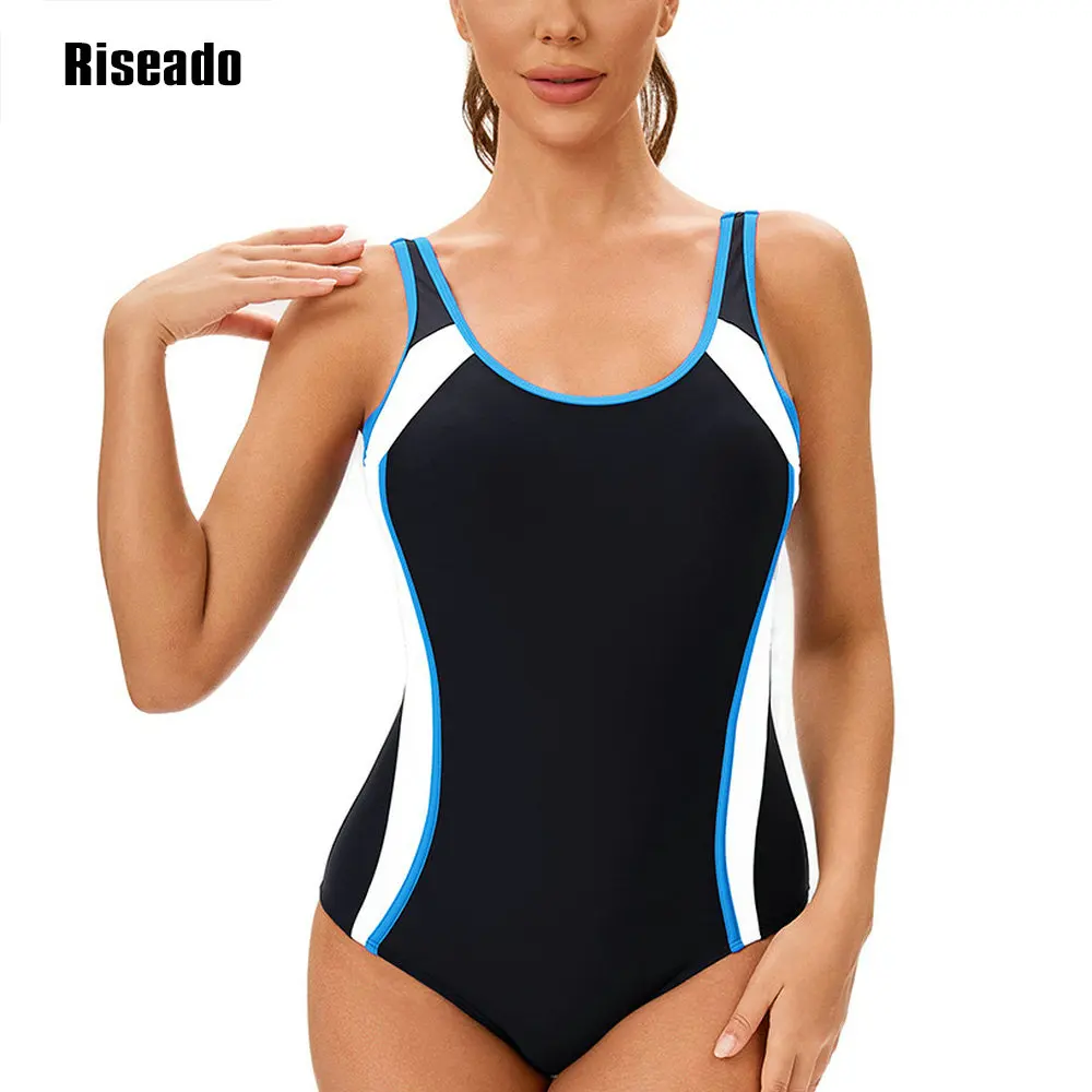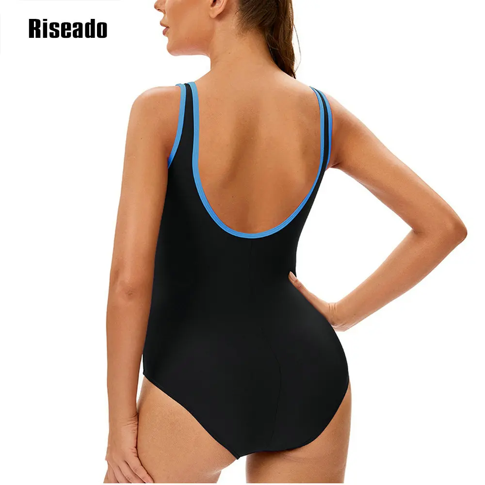 Women's Color Block One Piece Swimsuits U Back Athletic Training Swimwear Bathing Suits