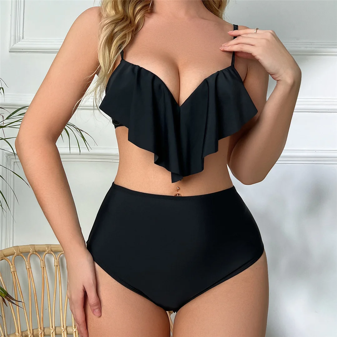 This two-piece bikini set features a high-waist design and underwired support, combining style with comfort for confident swimming. Available in sizes S to XL, the printed swimsuit offers a flattering fit that enhances your silhouette while providing reliable support. Ideal for both casual beach days and active swim sessions, this swimwear balances fashion and function seamlessly.