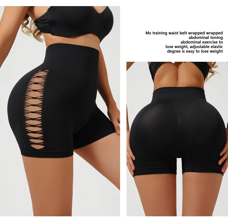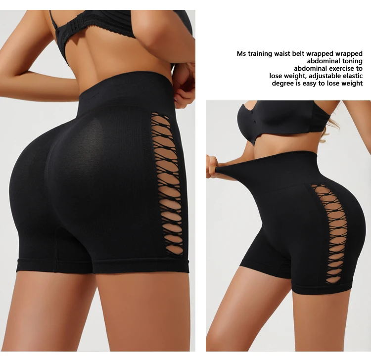 Side Hollow out Yoga Shorts Seamless Slim Shorts Outdoor Sports High Elastic High Waist Hip Lifting Gym Three Point Shorts