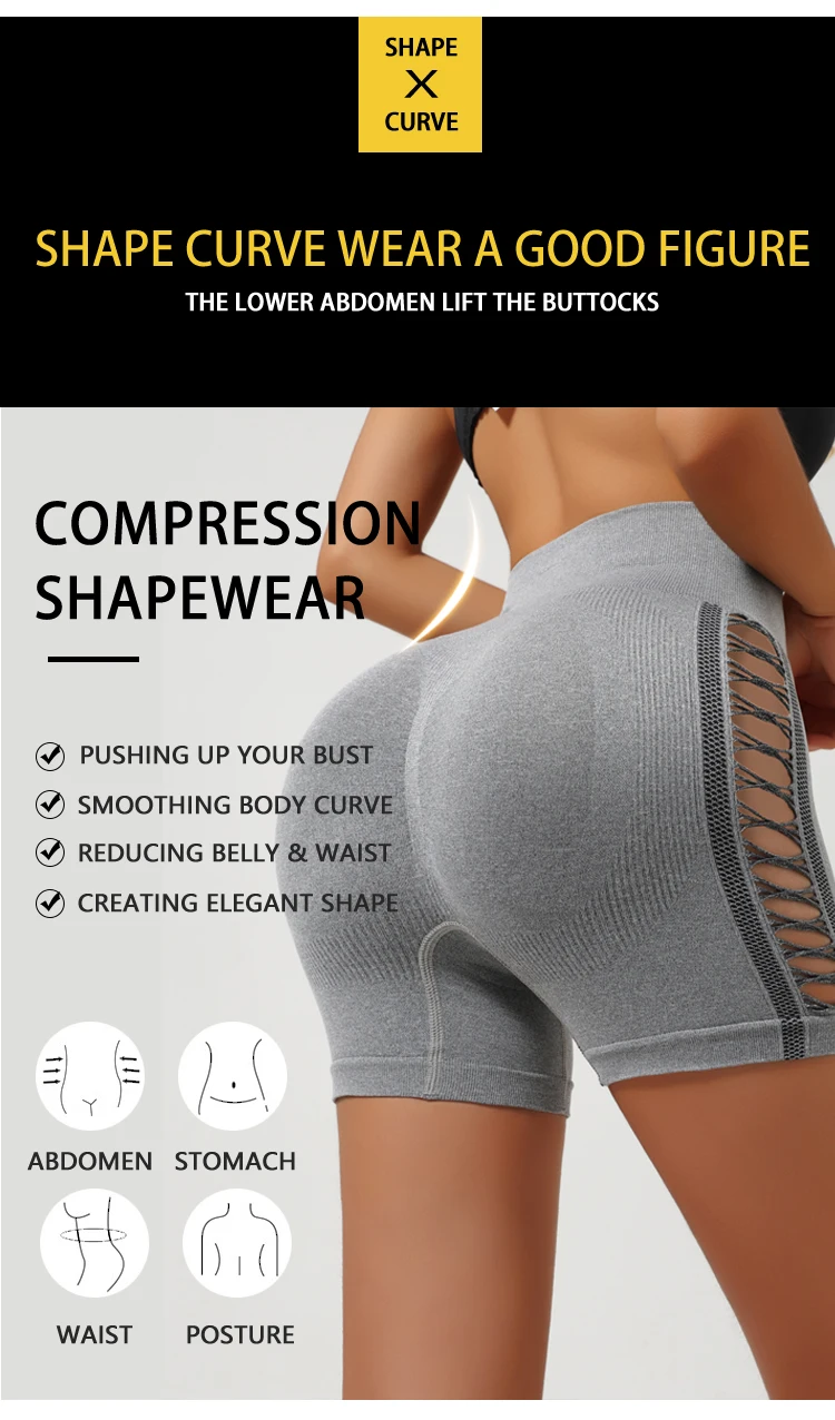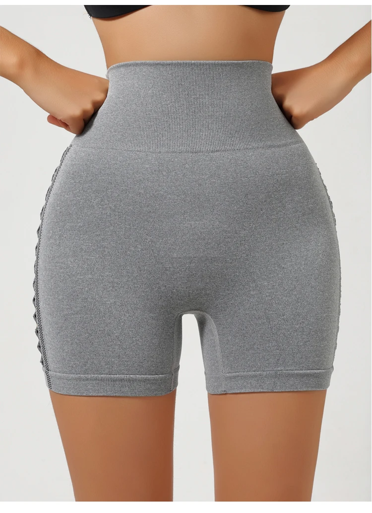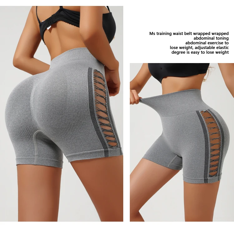 Side Hollow Out Yoga Shorts combine functional design with flattering aesthetics. The seamless construction eliminates chafing and bunching, while the high-waist cut provides superior support and coverage. Strategic hollow-out panels enhance breathability during intense workouts, and the high-elasticity fabric moves with your body without restriction. The hip-lifting design creates a sculpted silhouette, making these shorts ideal for yoga, gym sessions, and outdoor activities. Three-point length offers versatile styling options for various training intensities.