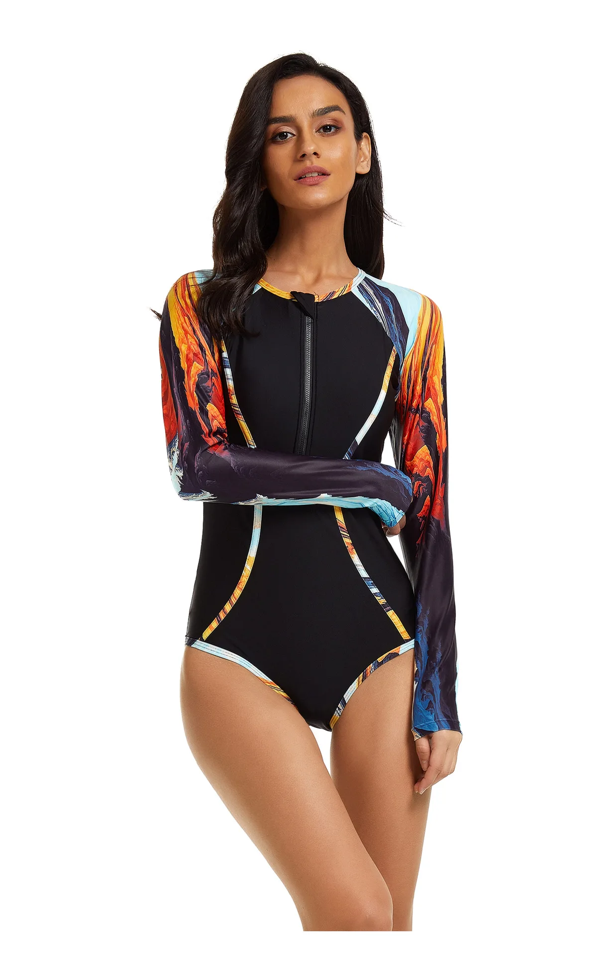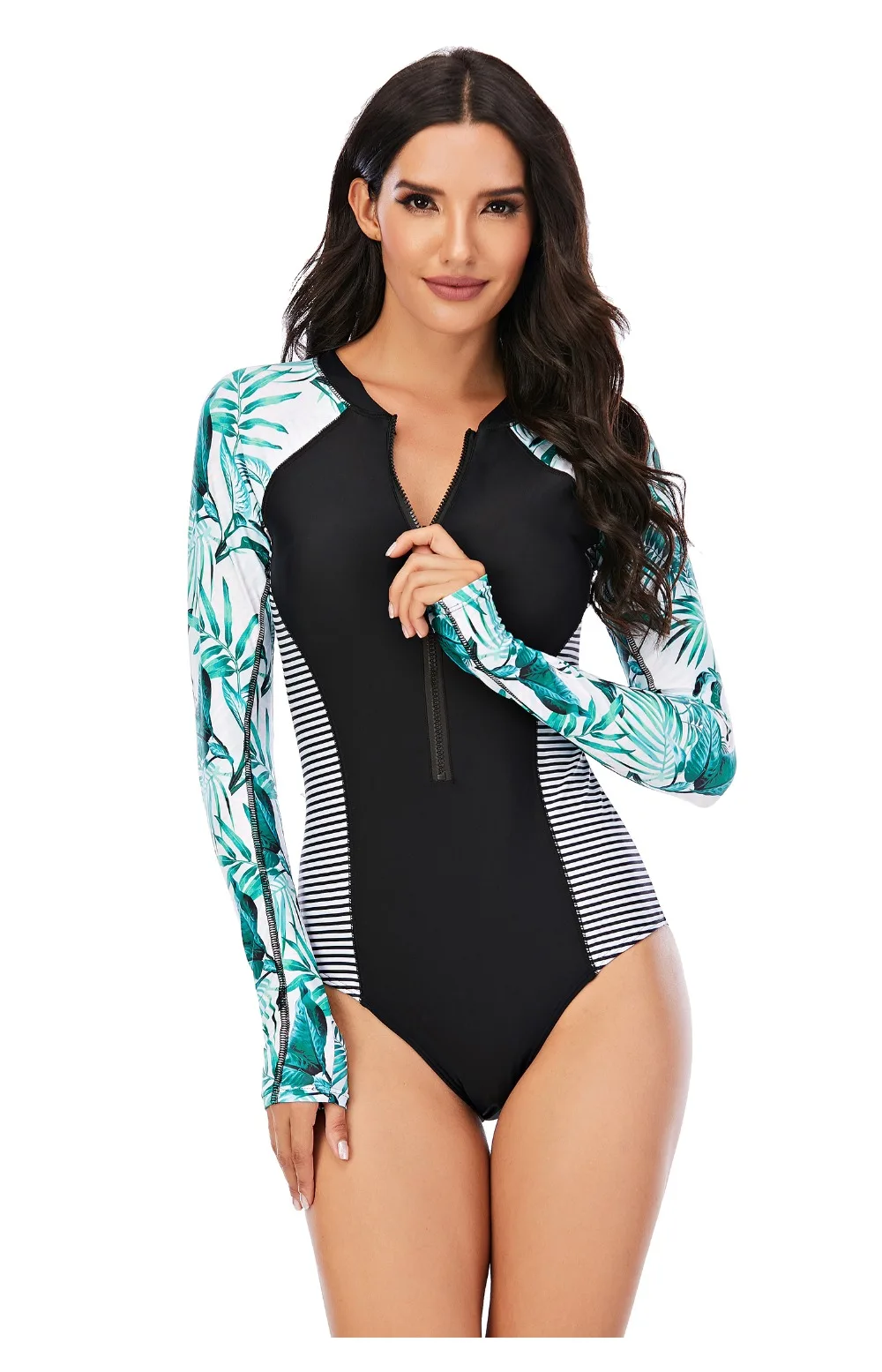 Engineered for active water sports, this long-sleeve rash guard combines UV protection with a streamlined silhouette. The one-piece design offers full coverage and support for surfing, swimming, and beach activities. Constructed from quick-drying, chlorine-resistant fabric, it resists fading and maintains shape through repeated wear. The fitted bodysuit cut minimises drag in water while the extended sleeves shield your arms from sun exposure. Ideal for serious swimmers and surfers seeking performance-driven swimwear that doesn't compromise on style.