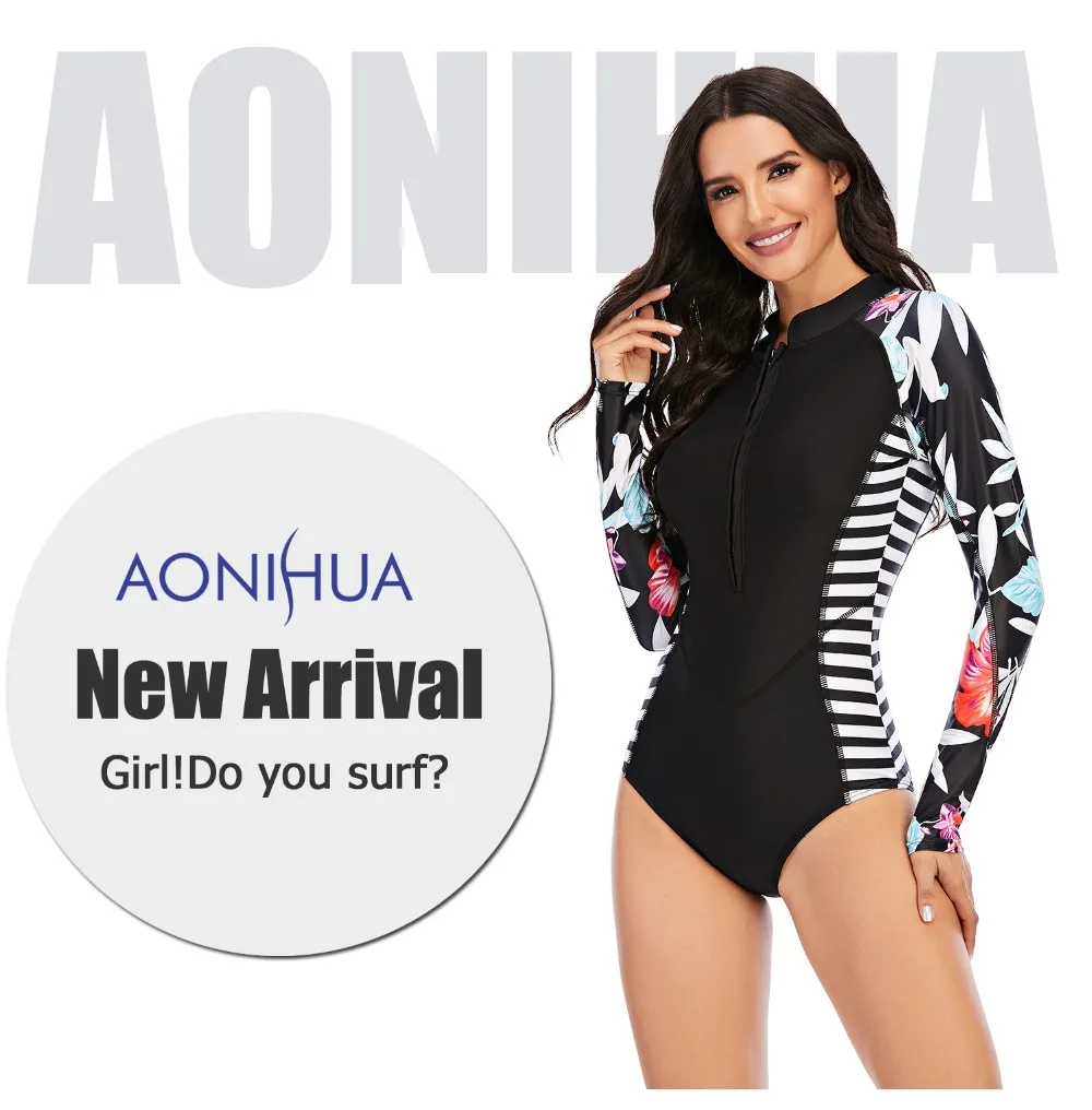 Surf Rash guard Long Sleeve Swimwear Women One Piece Swimsuit Rash Guard Swimsuit Bathing Suit Beach Wear Bodysuit Monokini