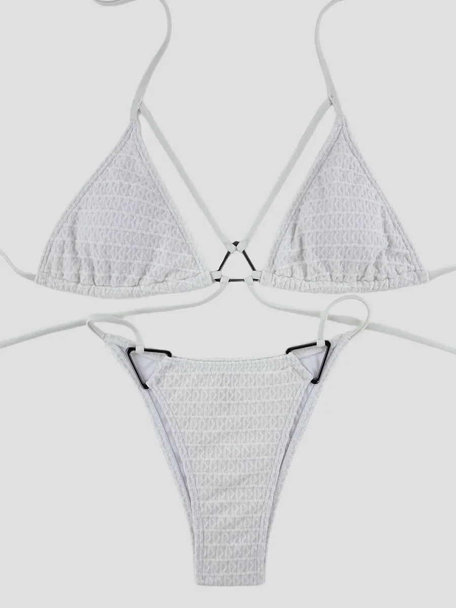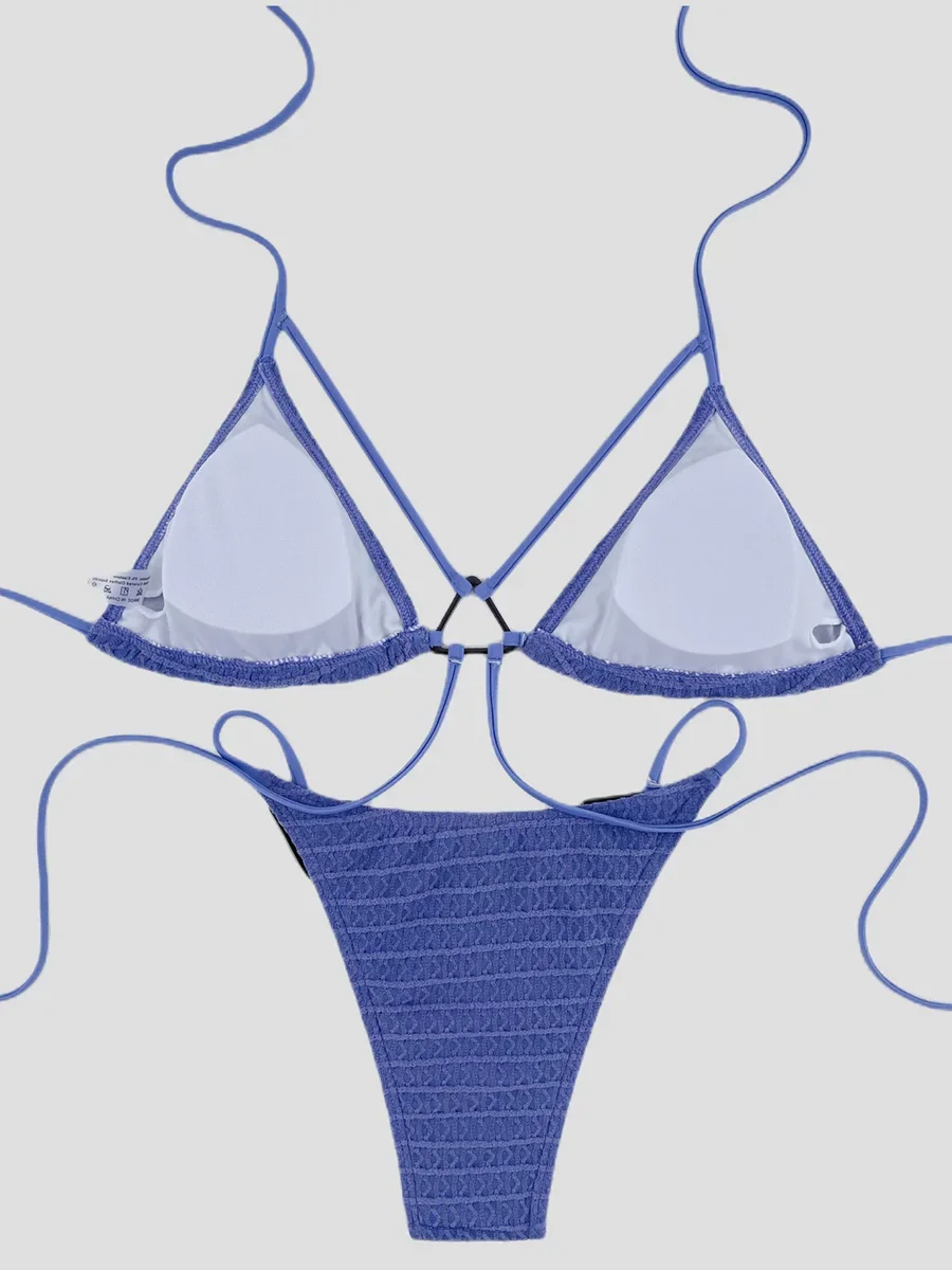 This two-piece bikini features a wrinkled halter design with high cut legs, offering a flattering silhouette that enhances your natural shape. The hollow-out details add a stylish touch while maintaining comfort and breathability. Perfect for confident swimmers seeking both fashion and function, this swimsuit combines modern aesthetics with practical support for beach or poolside wear.